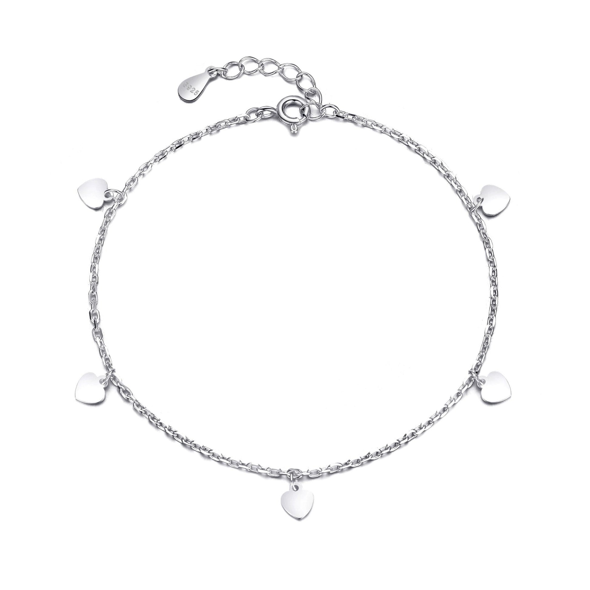Crafted from luxurious, hypoallergenic sterling silver, this stunning bracelet features a delicate chain link design with 5 dainty heart charms measuring 5.5mm. Stamped with a 925 metal stamp, it exudes quality and craftsmanship. With a length of 17.8cm and 2.5cm extender, it'll fit comfortably on any wrist. Packaged in a charming branded gift pouch, it's the perfect present.