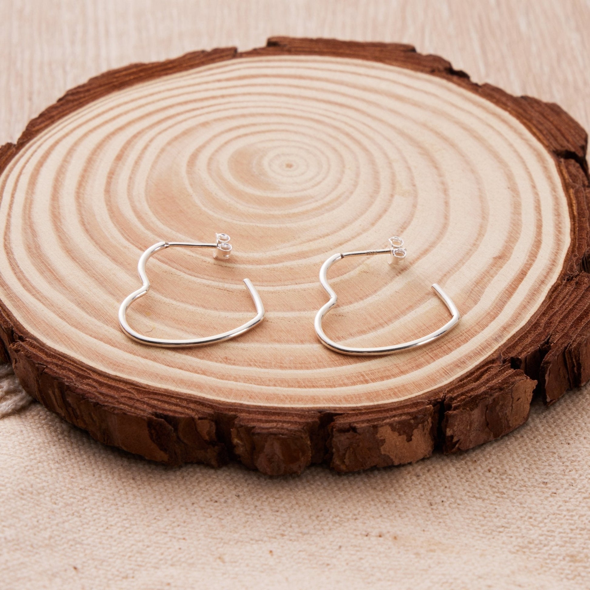 Sterling Silver Heart Hoop Earrings with Butterfly Backs