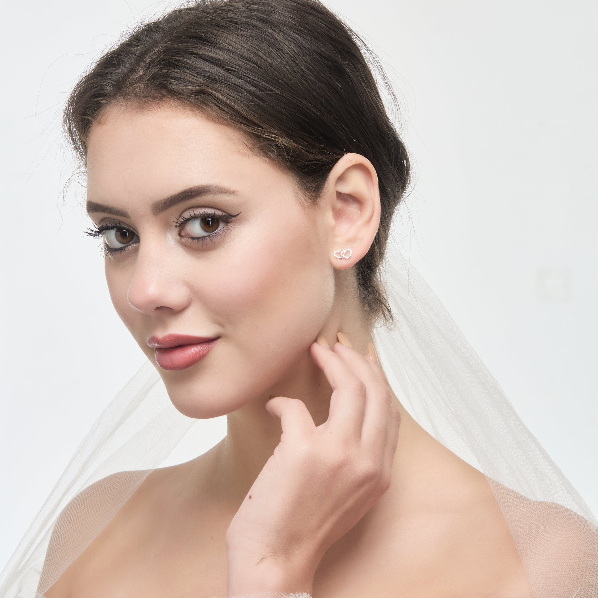 These Sterling Silver heart-shaped stud earrings from Philip Jones are the perfect Wedding accessory for brides, bridesmaids, and anyone celebrating love. Crafted from hypoallergenic 925 sterling silver, they ensure comfort and lasting shine throughout your special day. Measuring 7.5mm by 11mm, their delicate design complements bridal and bridesmaid styles beautifully. The secure butterfly closure keeps them comfortably in place, while the elegant gift pouch with a quote card makes them an ideal keepsake for weddings and bridal parties. Celebrate your unforgettable moments with these
