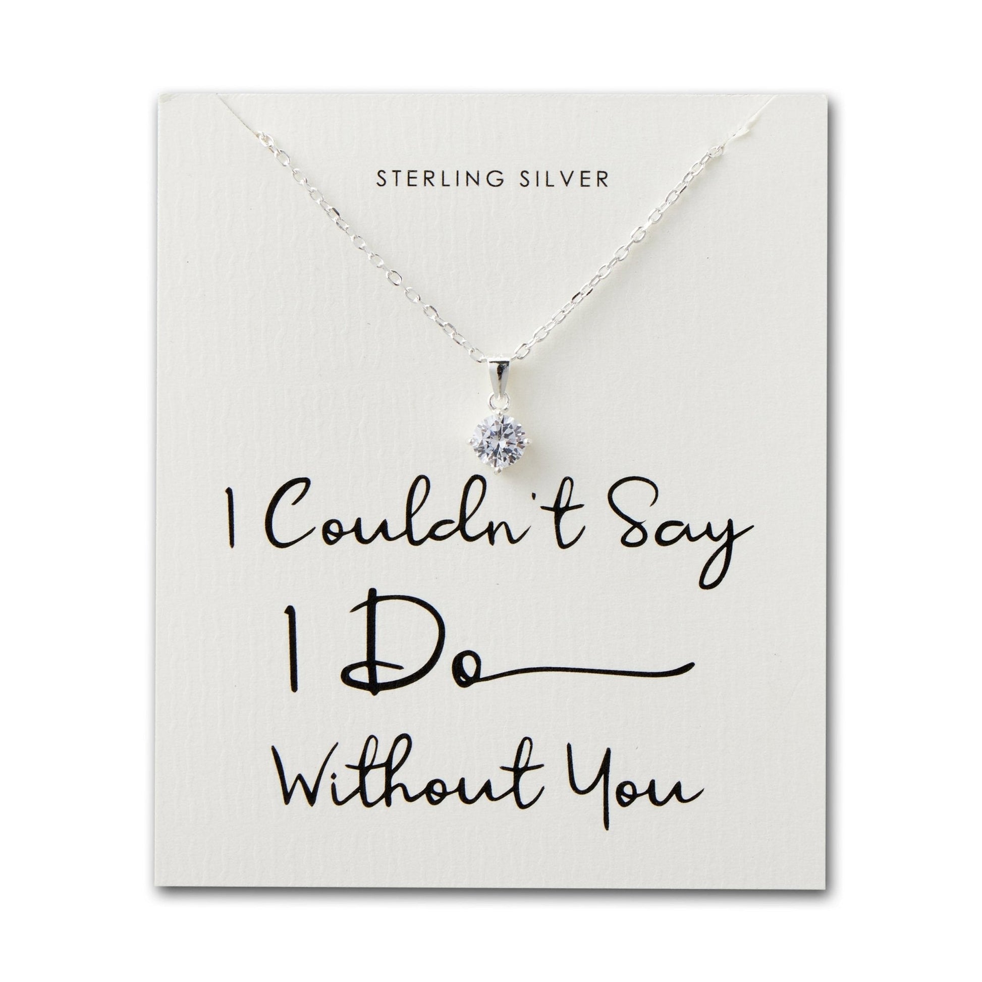 Sterling Silver I Couldn't Say I Do Without You Bridal Solitaire Crystal Necklace