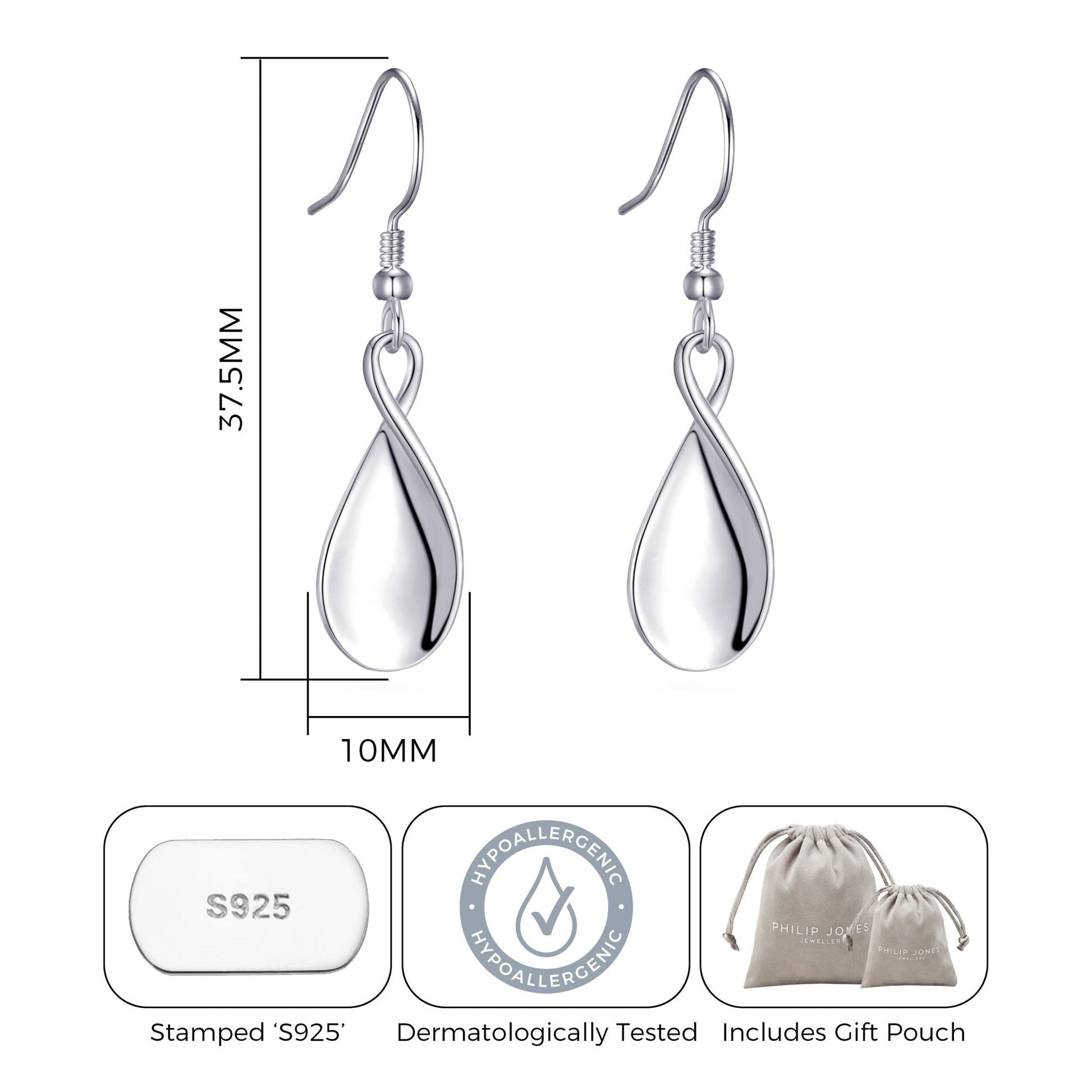 A timeless classic, these Sterling Silver Infinity Curve Earrings are hypoallergenic and perfect for everyday wear. Expertly crafted from Sterling Silver and stamped 925, they are lightweight yet durable with a unique, modern design. Delivered in a luxurious gift pouch, these earrings will be a treasured addition to any jewellery collection.