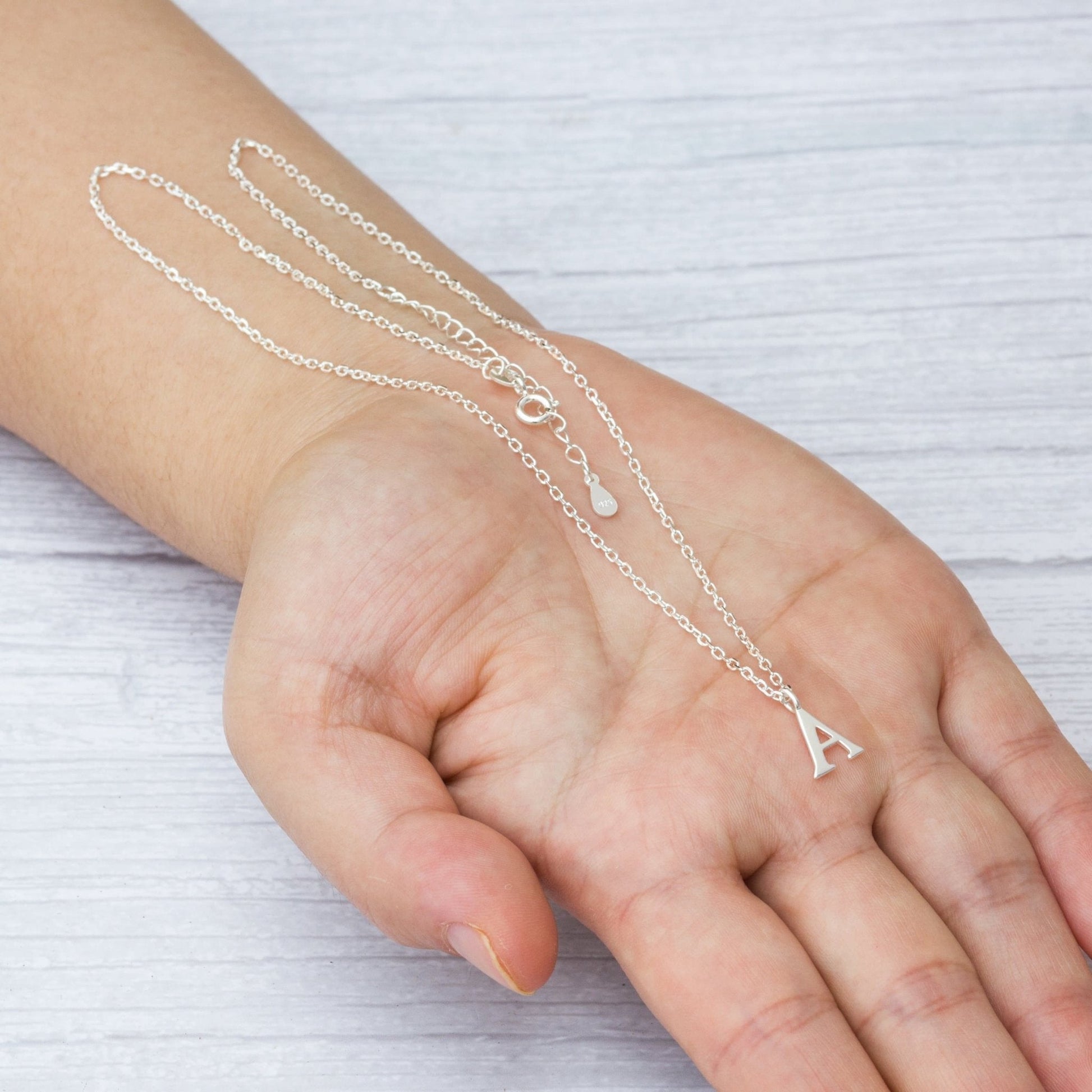 Enhance your style with the Philip Jones Sterling Silver Initial A Necklace. Made from hypoallergenic sterling silver and stamped with 925, this delicate pendant necklace adds a touch of elegance to any outfit. The cable chain ensures a secure fit, while the extender allows for adjustable length. Comes in a gift pouch for easy gifting and storage.