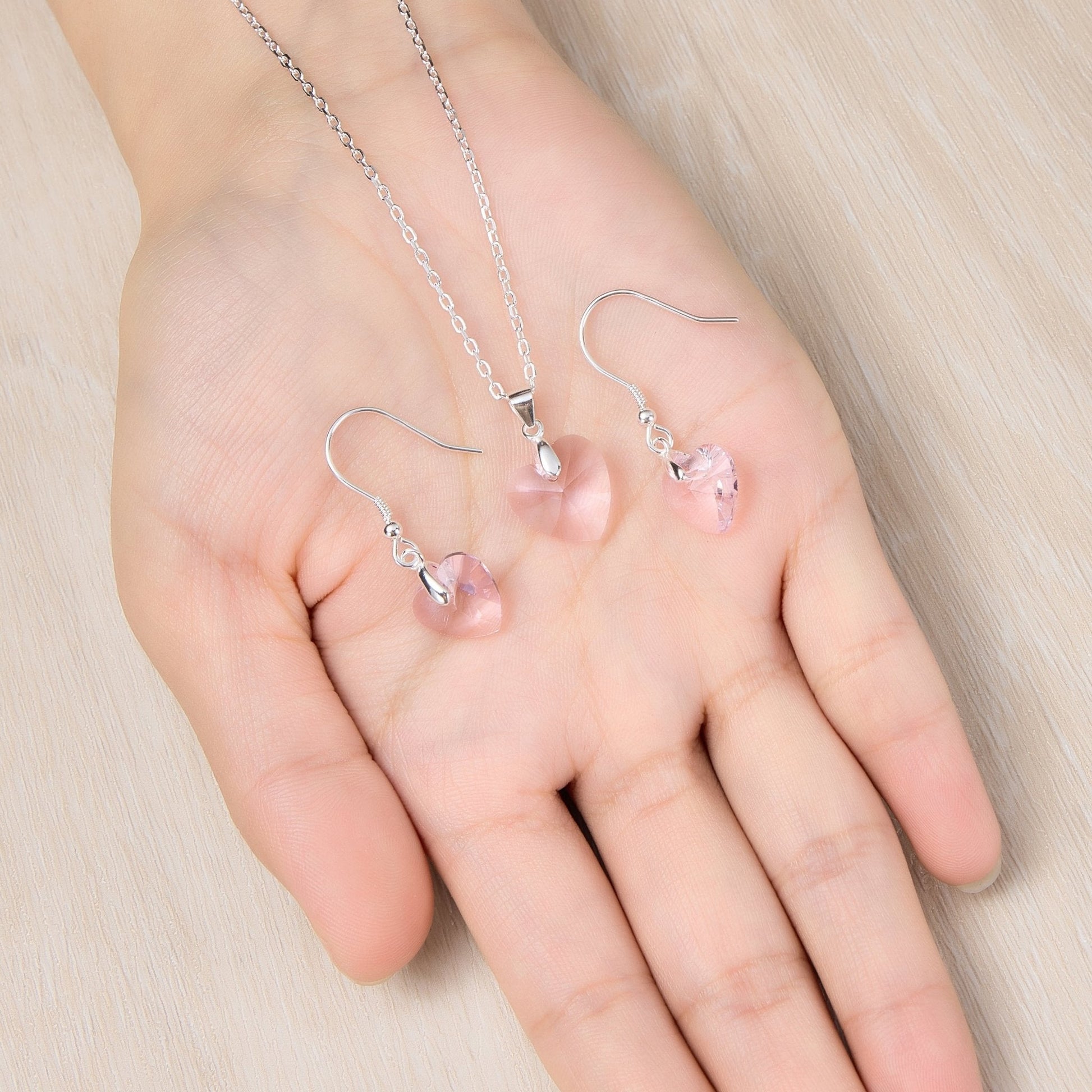 Sterling Silver Light Rose Heart Set Created with Zircondia® Crystals32527