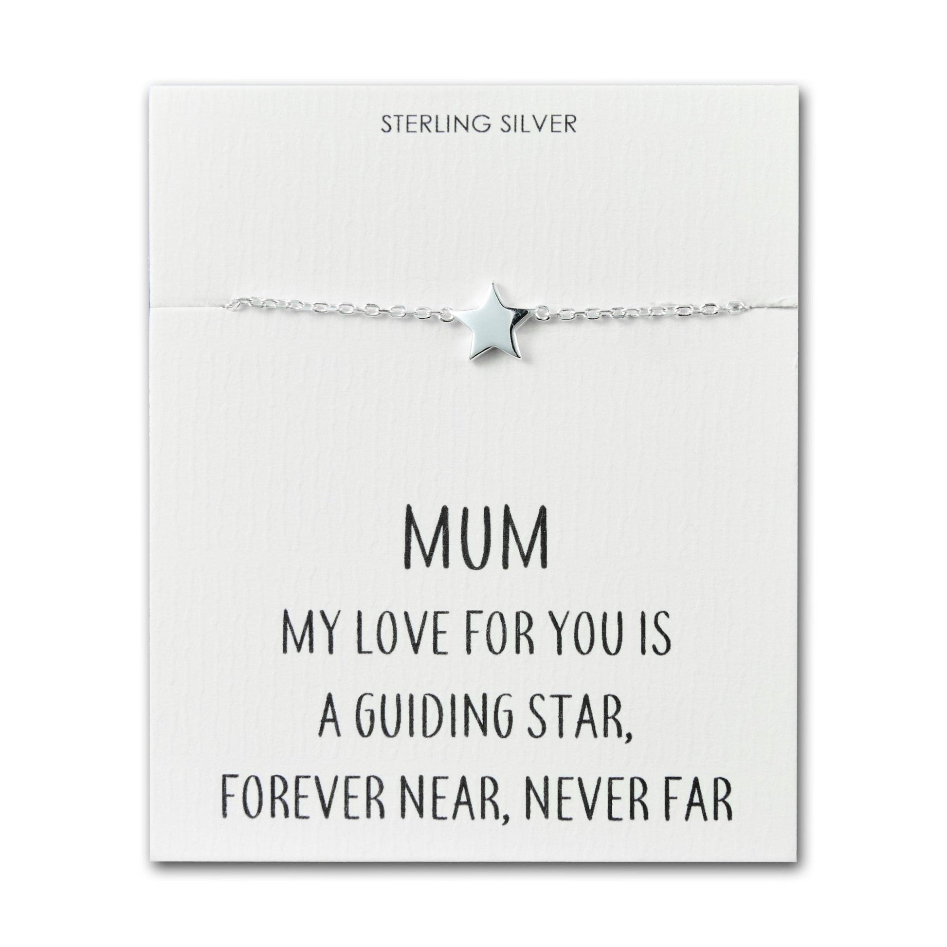 Made from high-quality 925 sterling silver, this Mum Quote Star Bracelet by Philip Jones is a stunning piece of jewellery that is both hypoallergenic and stylish. Measuring 9mm in both height and width, it is accented by a 17.8cm chain with a 2.5cm extender and a secure lobster claw closure. Packaged in a beautiful gift pouch with a quote card, it is the perfect gift for any special occasion.