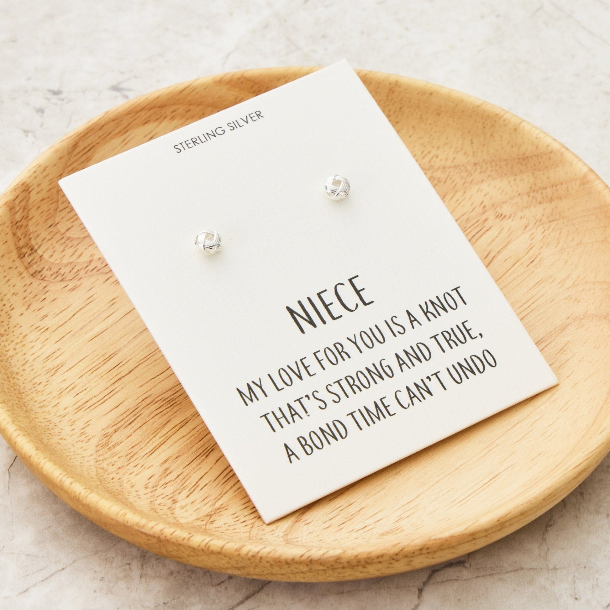 Sterling Silver Niece Quote Knot Earrings