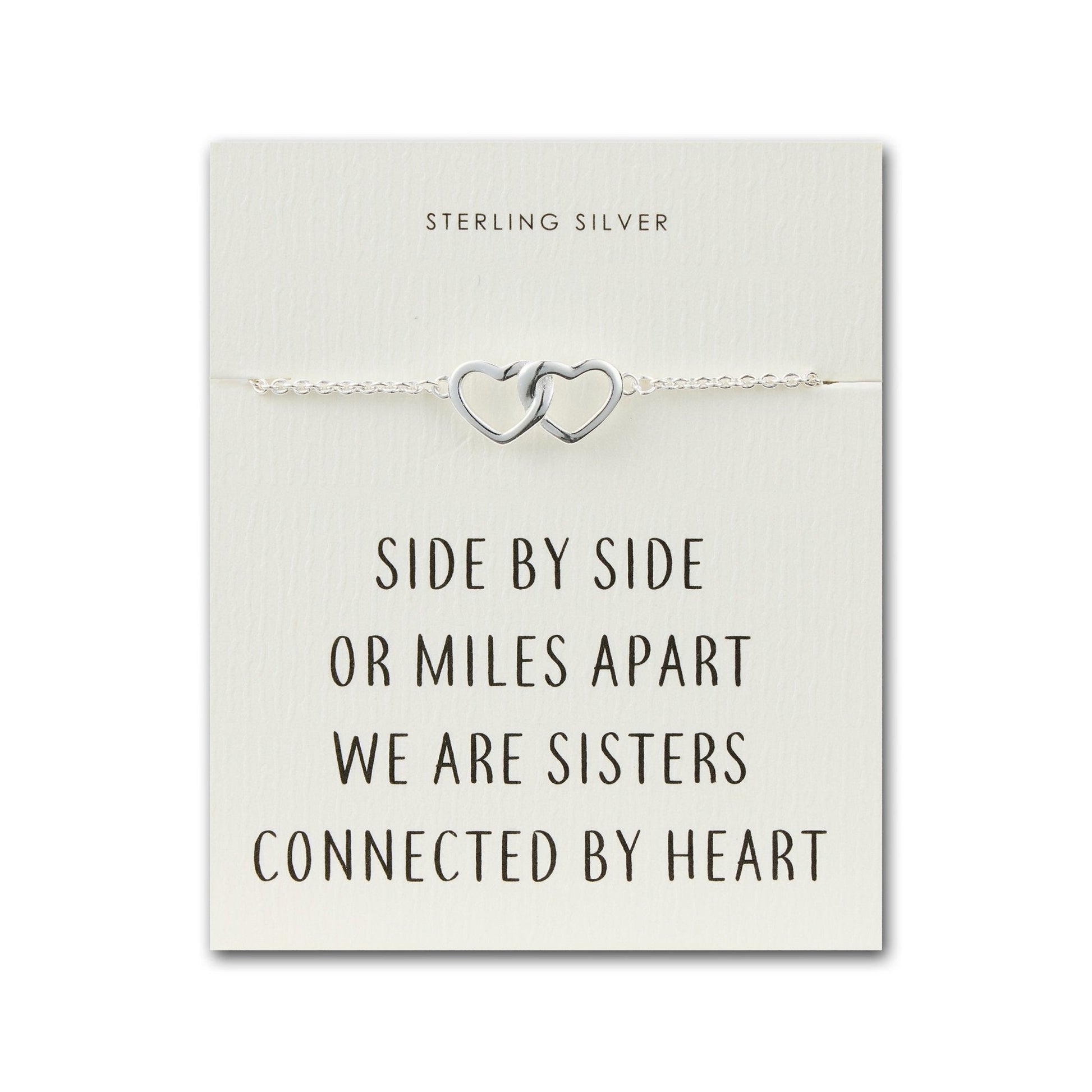 Sterling Silver Sister Heart Link Bracelet with Quote Card
