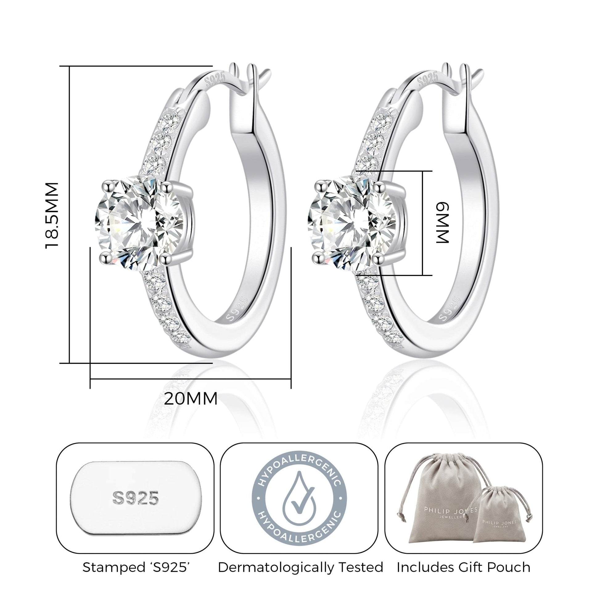 - Earring Dimensions: 18.5mm (H) x 20mm (W)