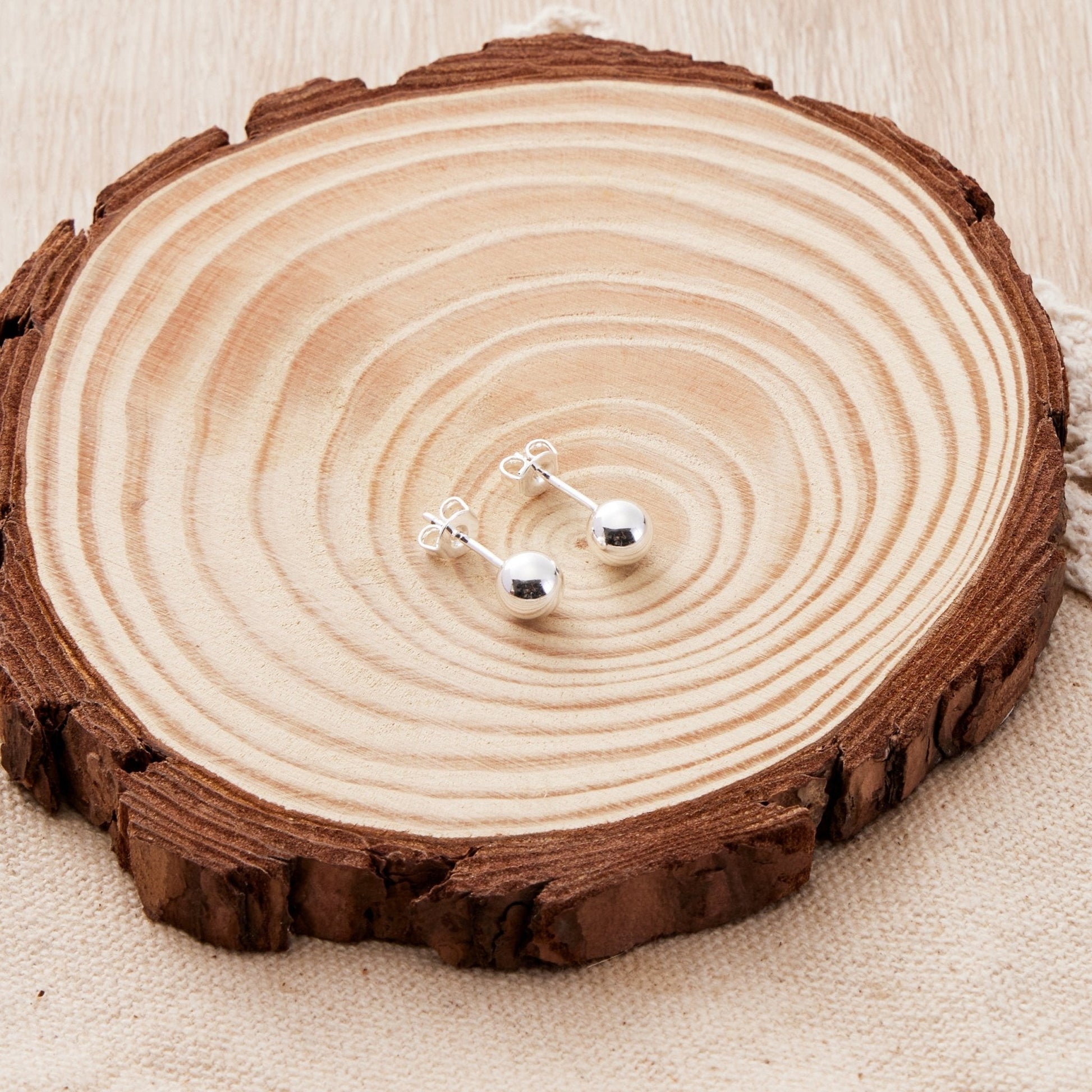 "Add a touch of elegance with our Sterling Silver Sphere Earrings from Philip Jones. These stylish studs are made from hypoallergenic stamped 925 sterling silver for comfortable wear. Featuring a butterfly closure and compact sizing, they make a perfect gift packaged in a 7cm x 5cm gift pouch. Weight: 1.8g."