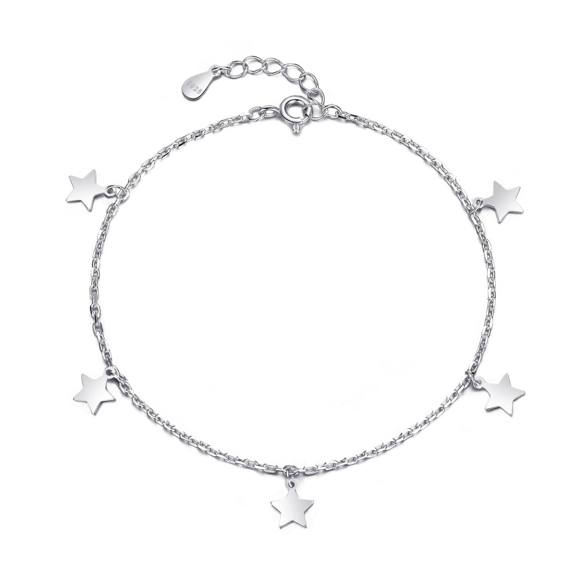 This beautiful bracelet is crafted from high-quality sterling silver, stamped with 925 for authenticity. Its hypoallergenic material makes it suitable for all skin types. The elegant chain link design and star charms will add a touch of sophistication to any outfit. With a bracelet length of 17.8cm and an additional 2.5cm extender, it's adjustable for a perfect fit. Securely fastened with a lobster claw closure, it's lightweight for comfortable wear. Each purchase comes in a lovely gift pouch, making it a perfect gift for any occasion