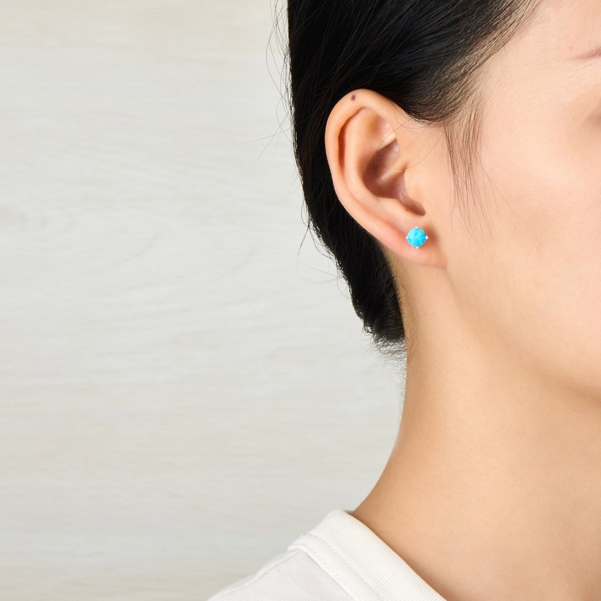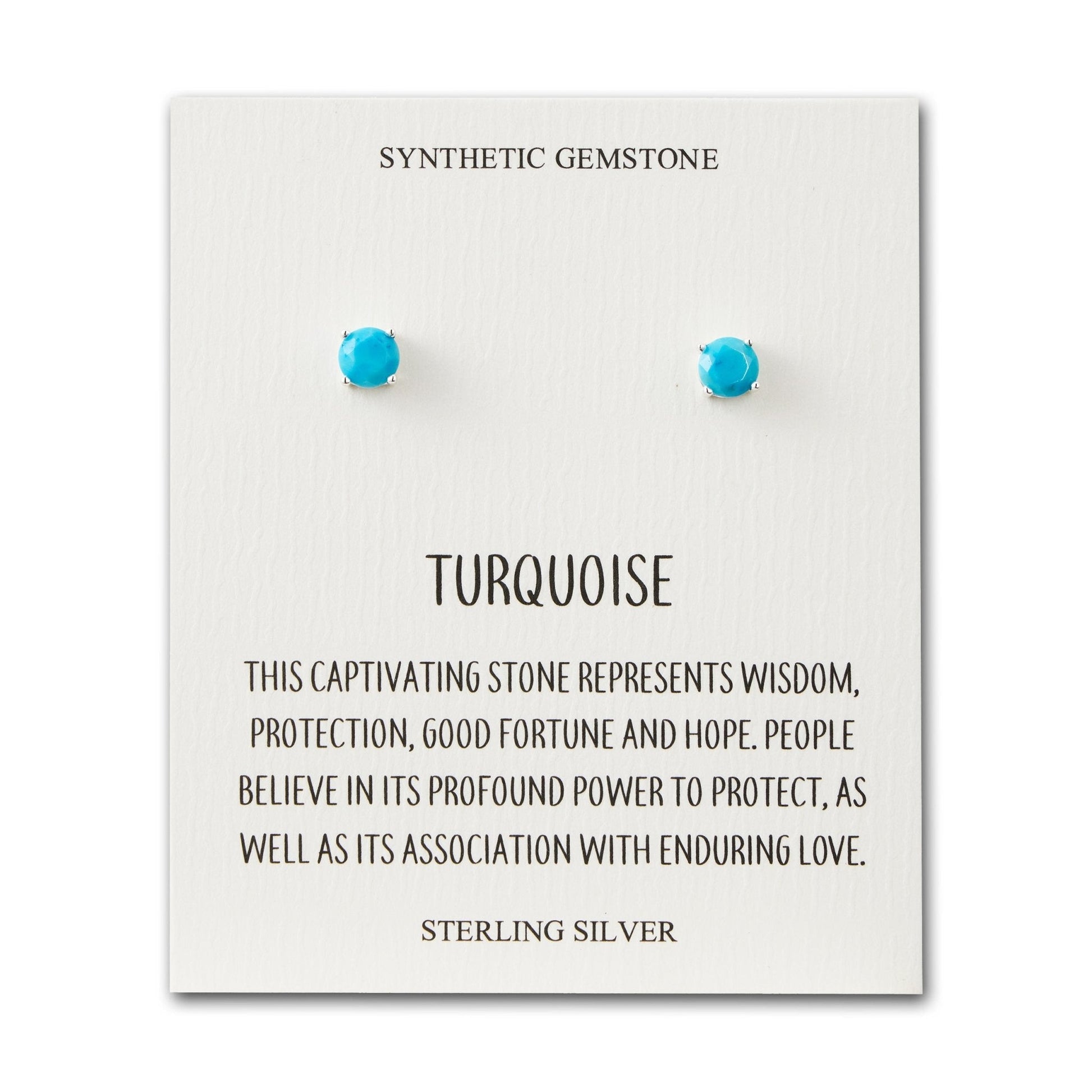 Discover the magic of Sterling Silver and Synthetic Turquoise earrings! Crafted with care, these hypoallergenic studs boast a mesmerizing 6mm round stone in a 4-prong setting. Lightweight and easy to wear, these beauties are stamped with a quality 925 mark. Complete with a quote card, they make the perfect gift.