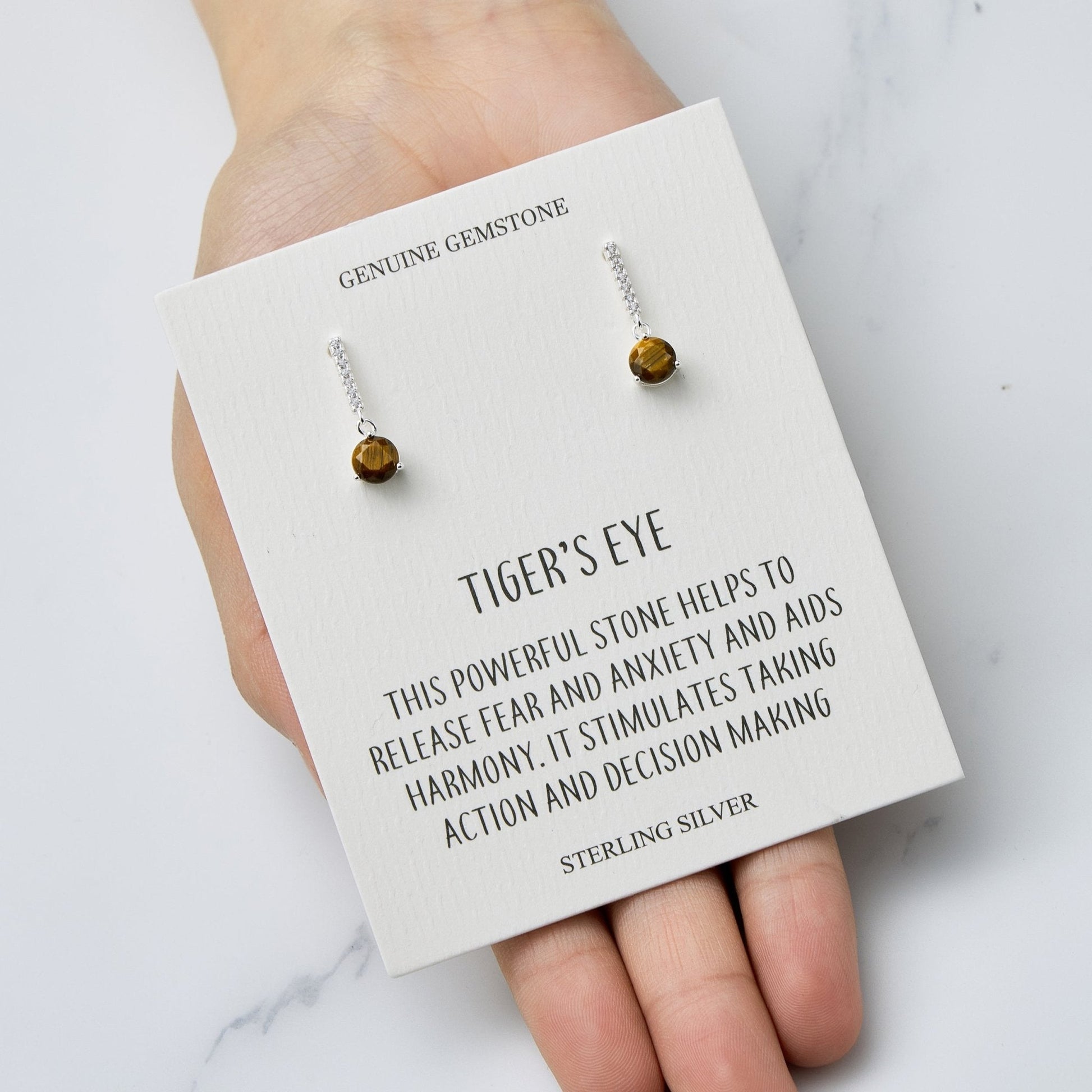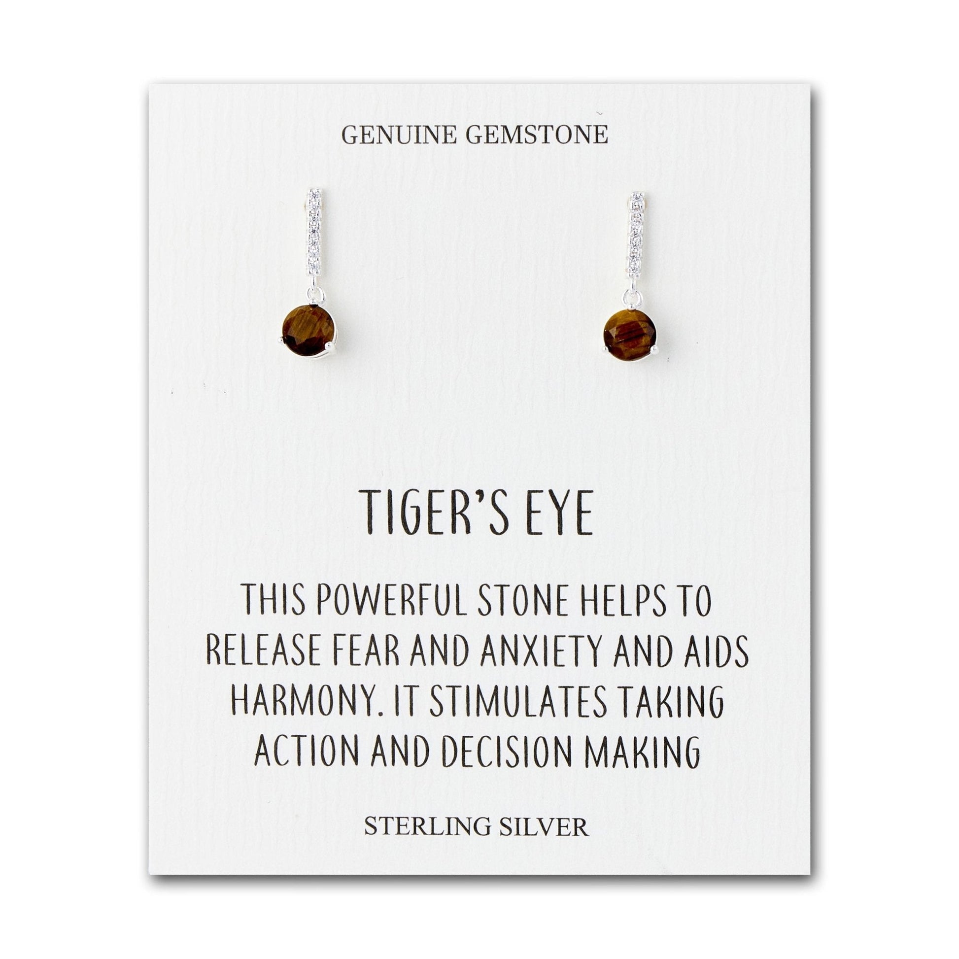 Sterling Silver Tigers Eye Gemstone Drop Earrings with Quote Card