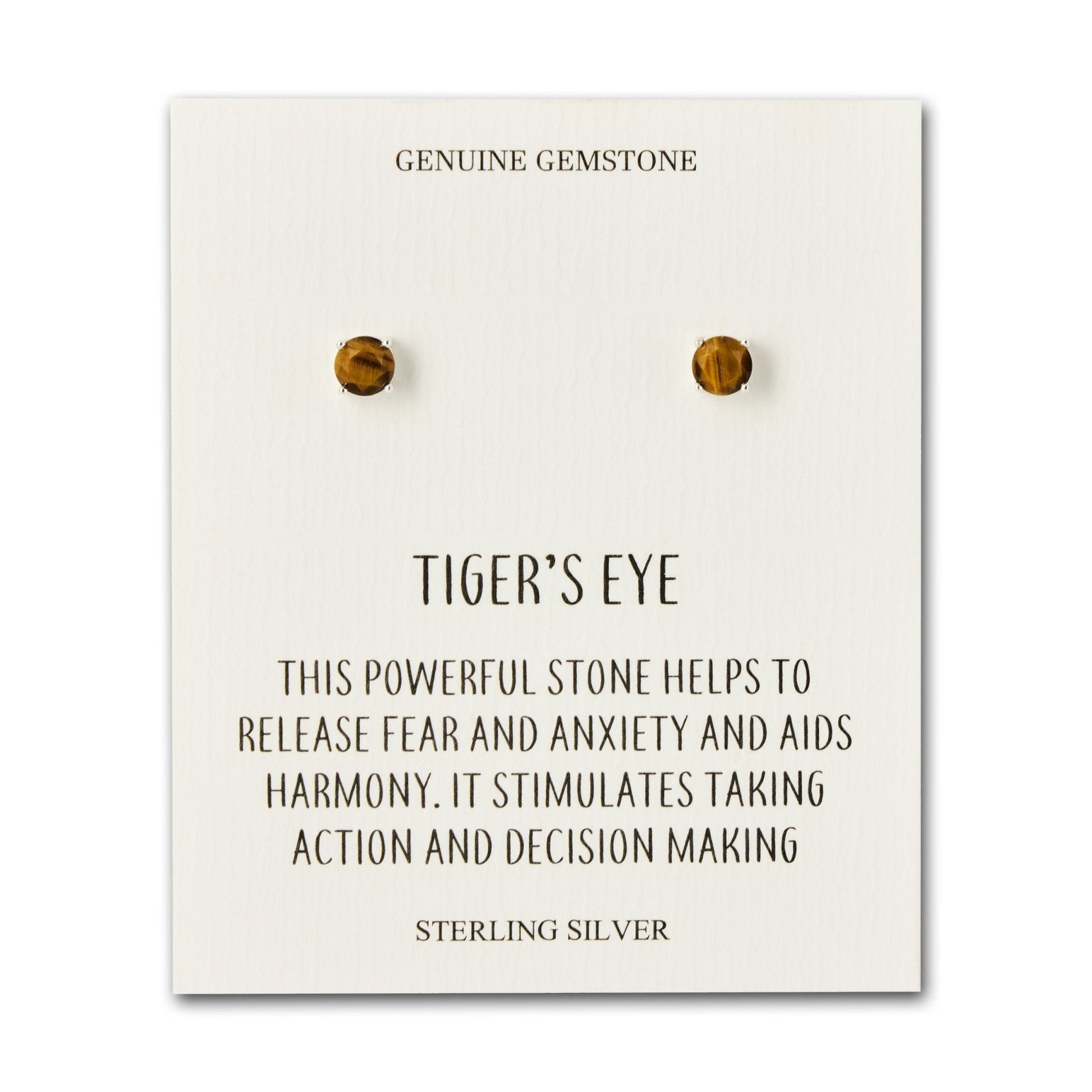 Sterling Silver Tigers Eye Gemstone Earrings with Quote Card