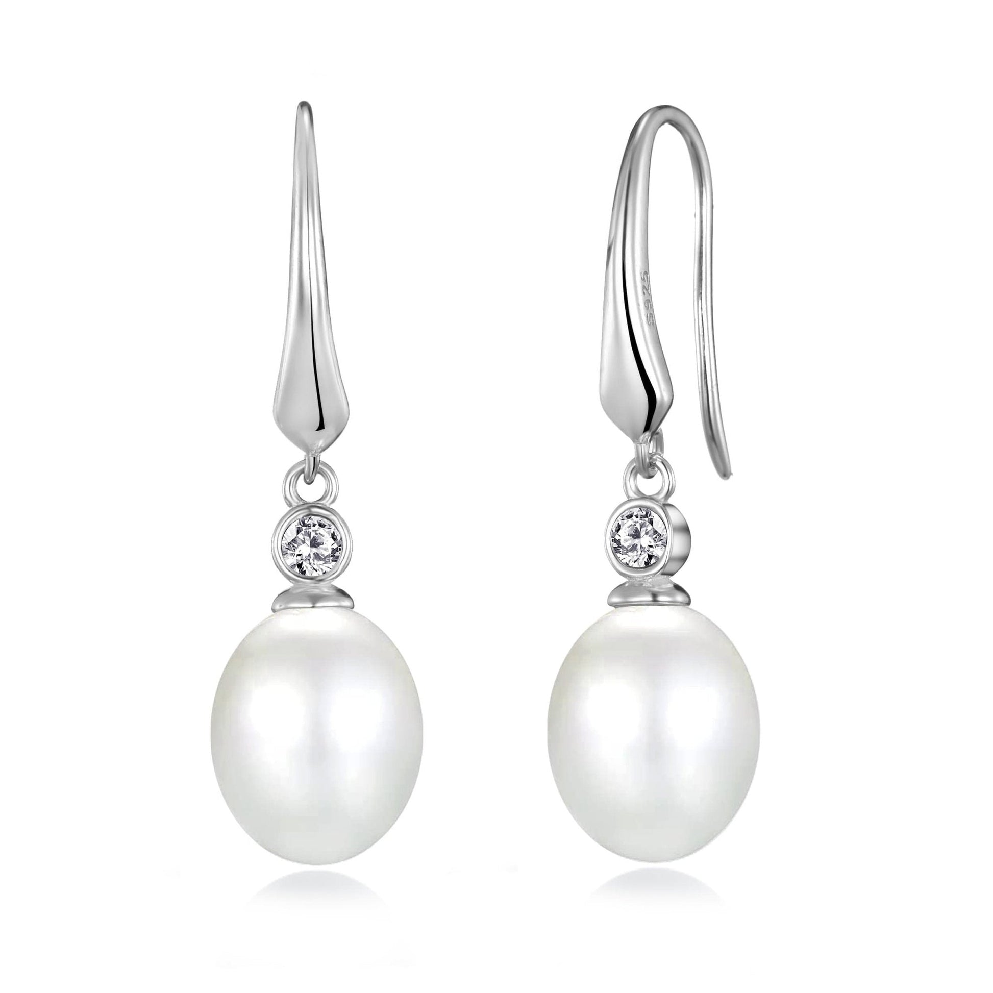 Sterling Silver White Pearl Drop Earrings Created with Zircondia® Crystals12321