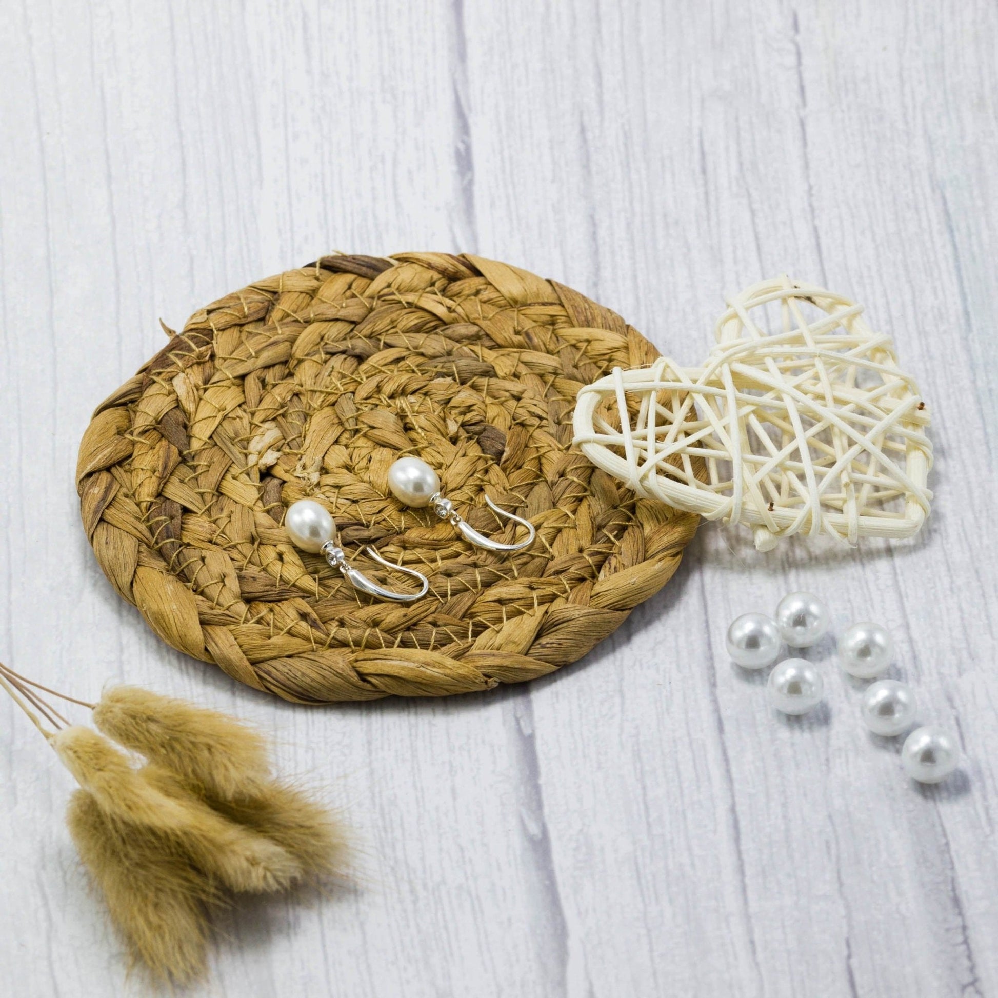 Sterling Silver White Pearl Drop Earrings Created with Zircondia® Crystals