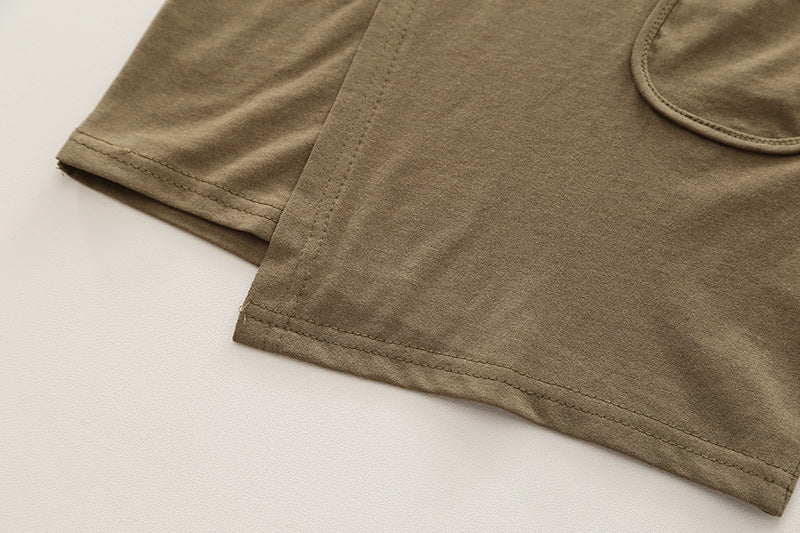 Color: short sleeve round pocket suit Green, short sleeve round pocket suit Brown