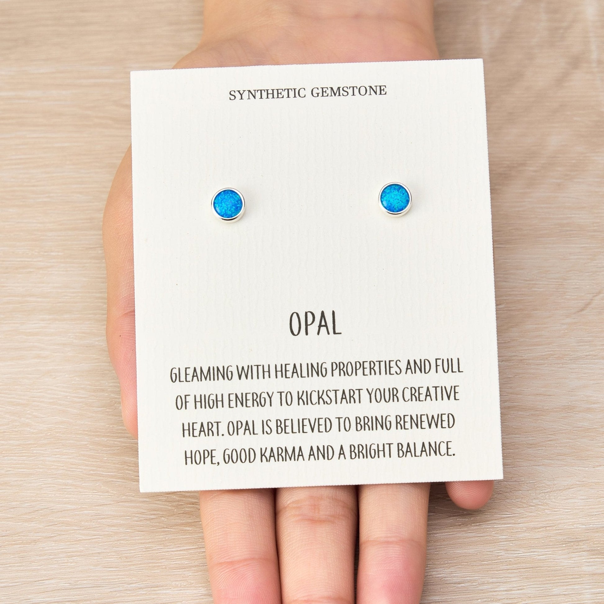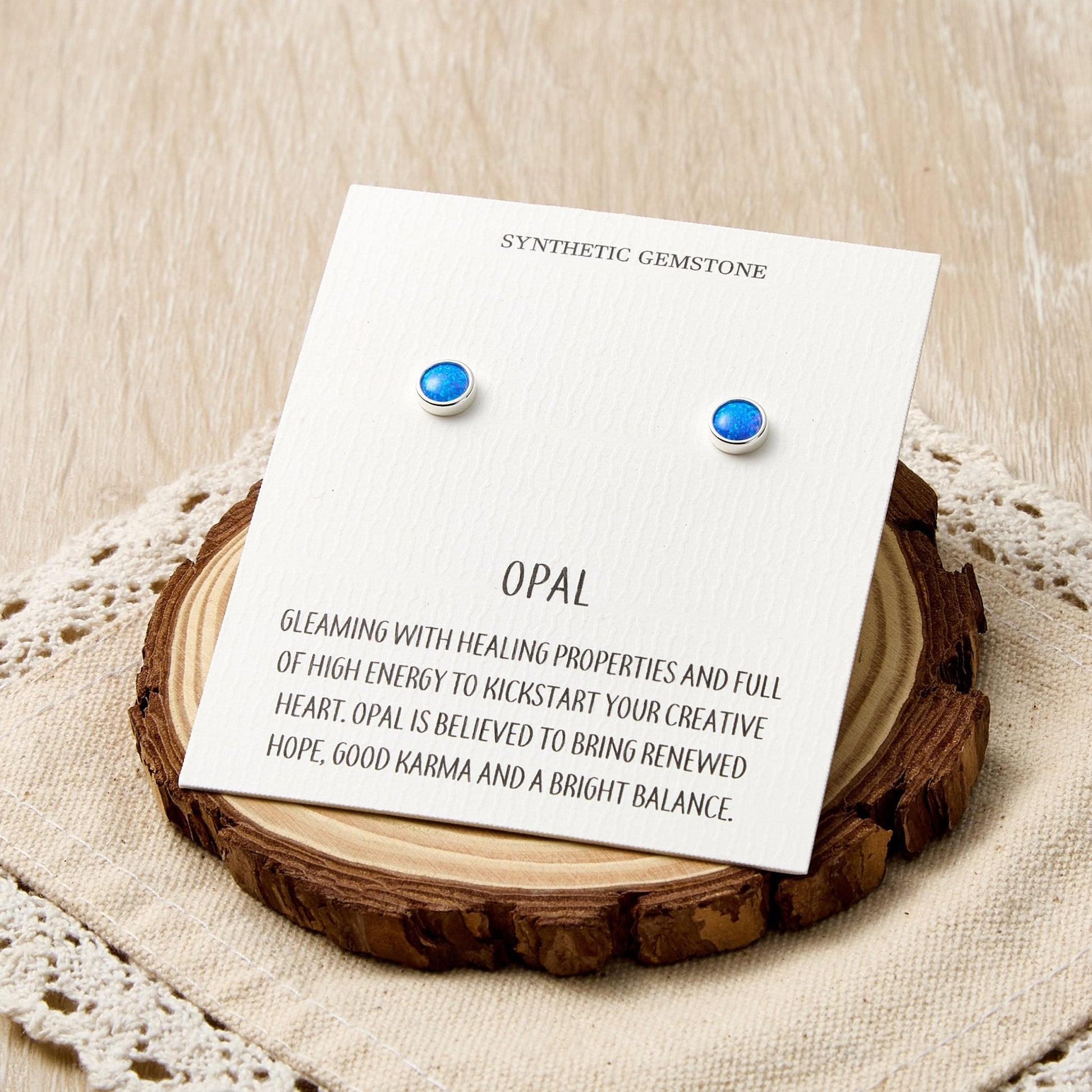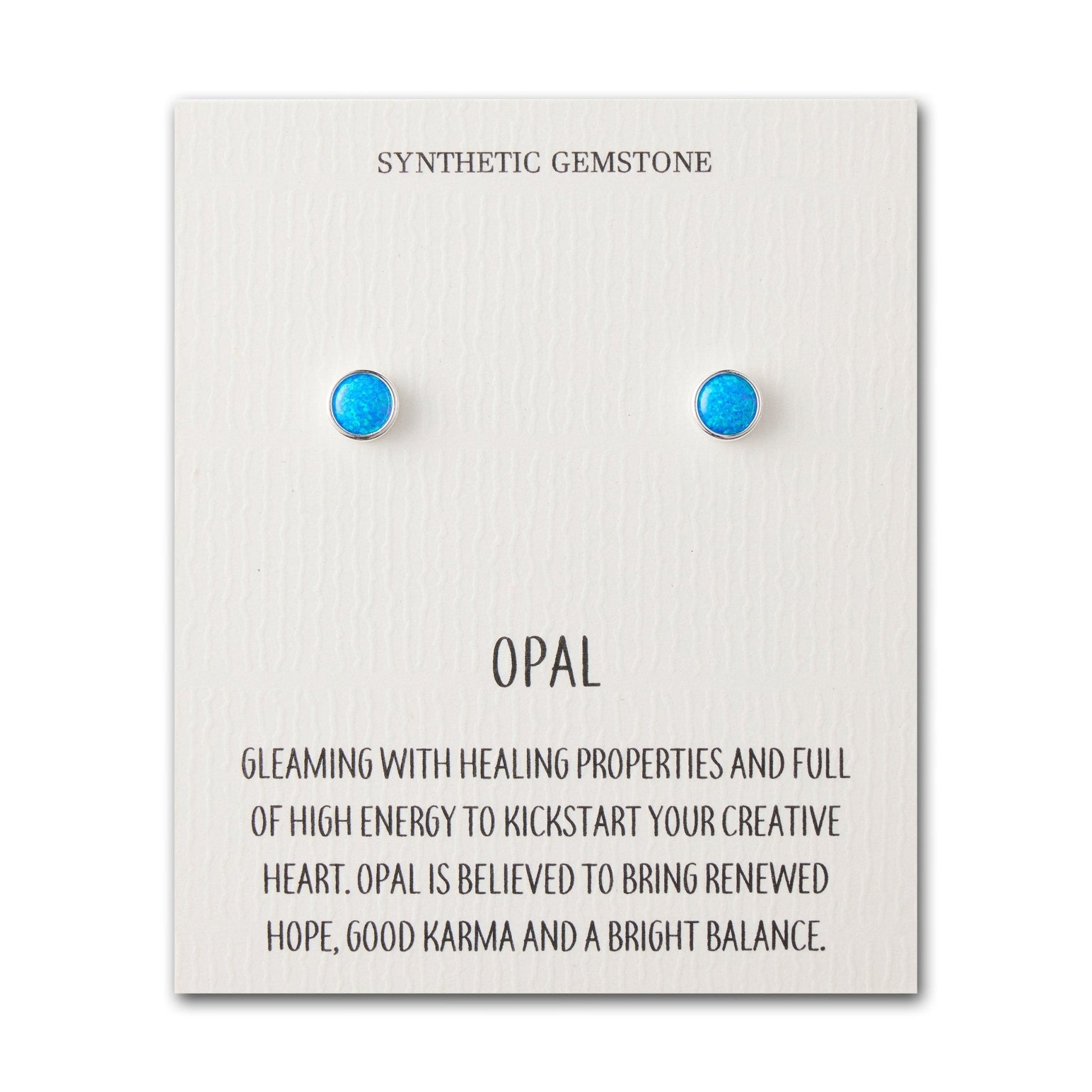 Synthetic Blue Opal Stud Earrings with Quote Card