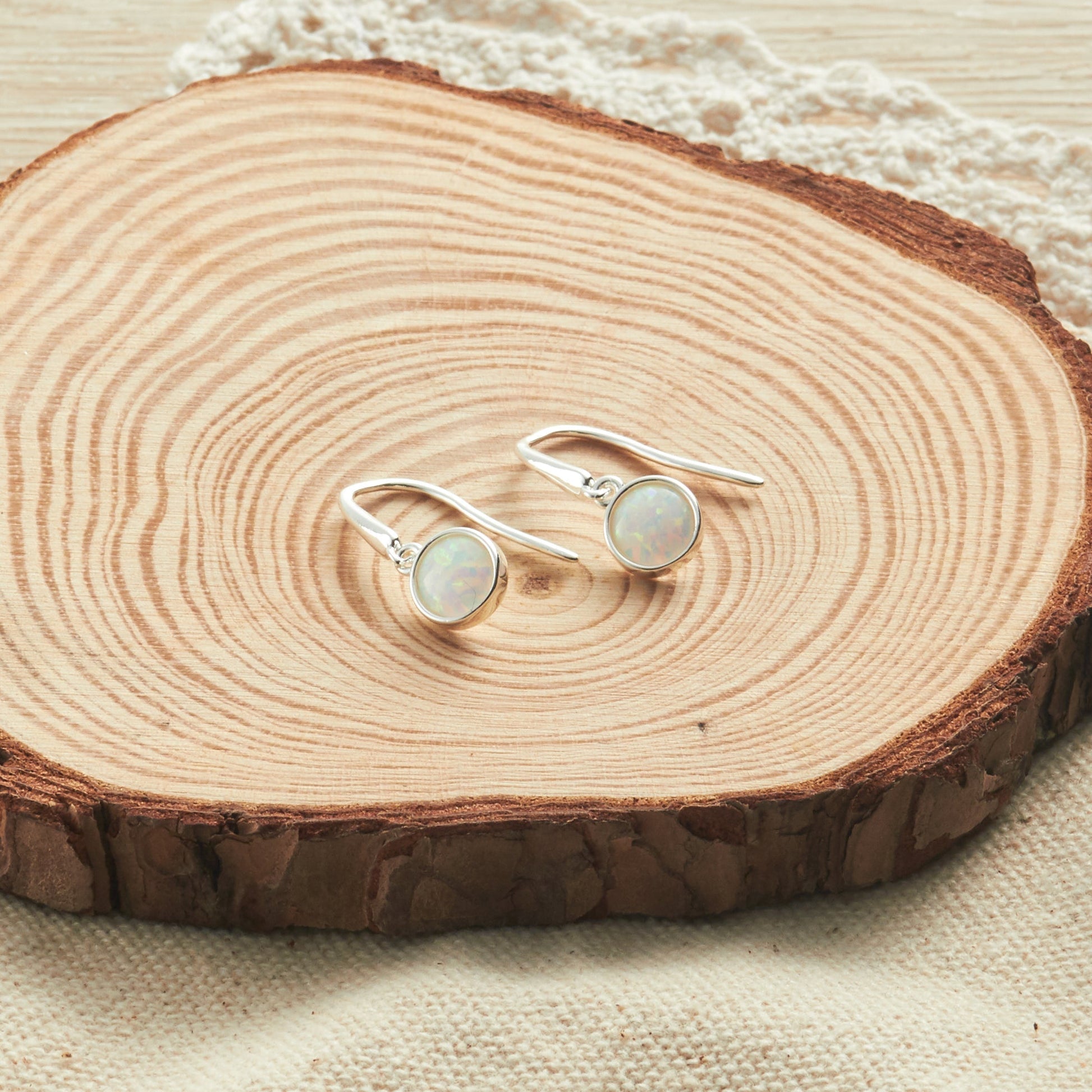 Synthetic White Opal Drop Earrings
