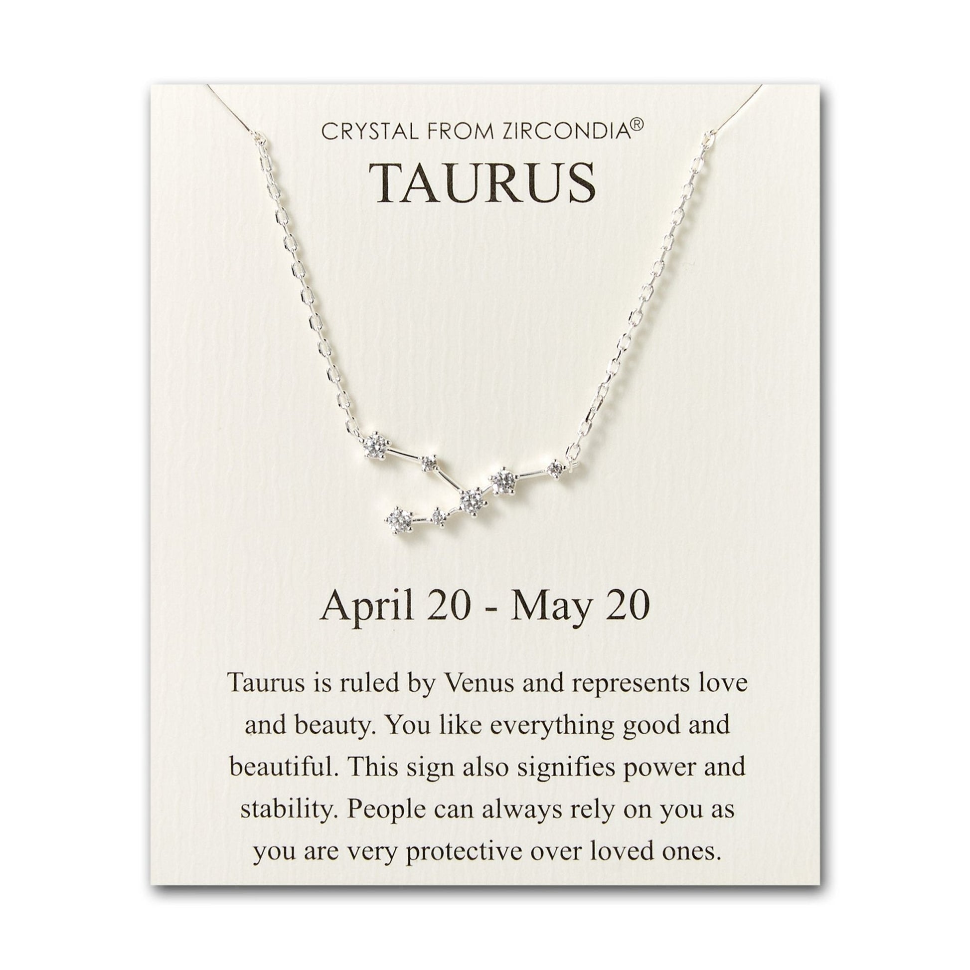 Taurus Star Sign Zodiac Constellation Necklace and Quote Card with Zircondia® Crystals