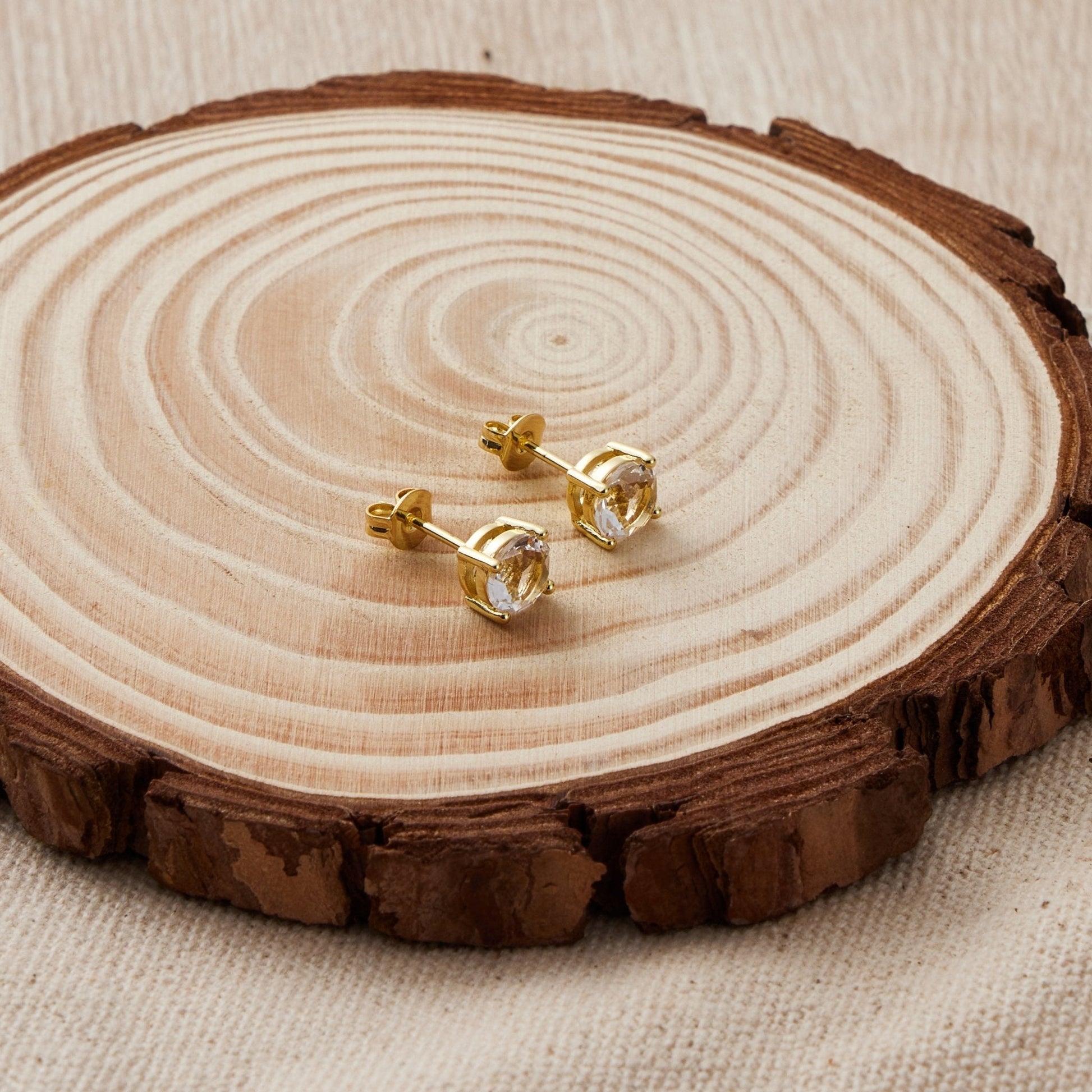 Philips Jones presents this set of three gold plated stud earrings, crafted from a brass alloy and featuring 4 prong stone settings. The stones are 6mm, 5mm, and 4mm Zircondia® crystals in a round shape, each in clear colour and weighing 3.4g in total. This set includes six earrings.