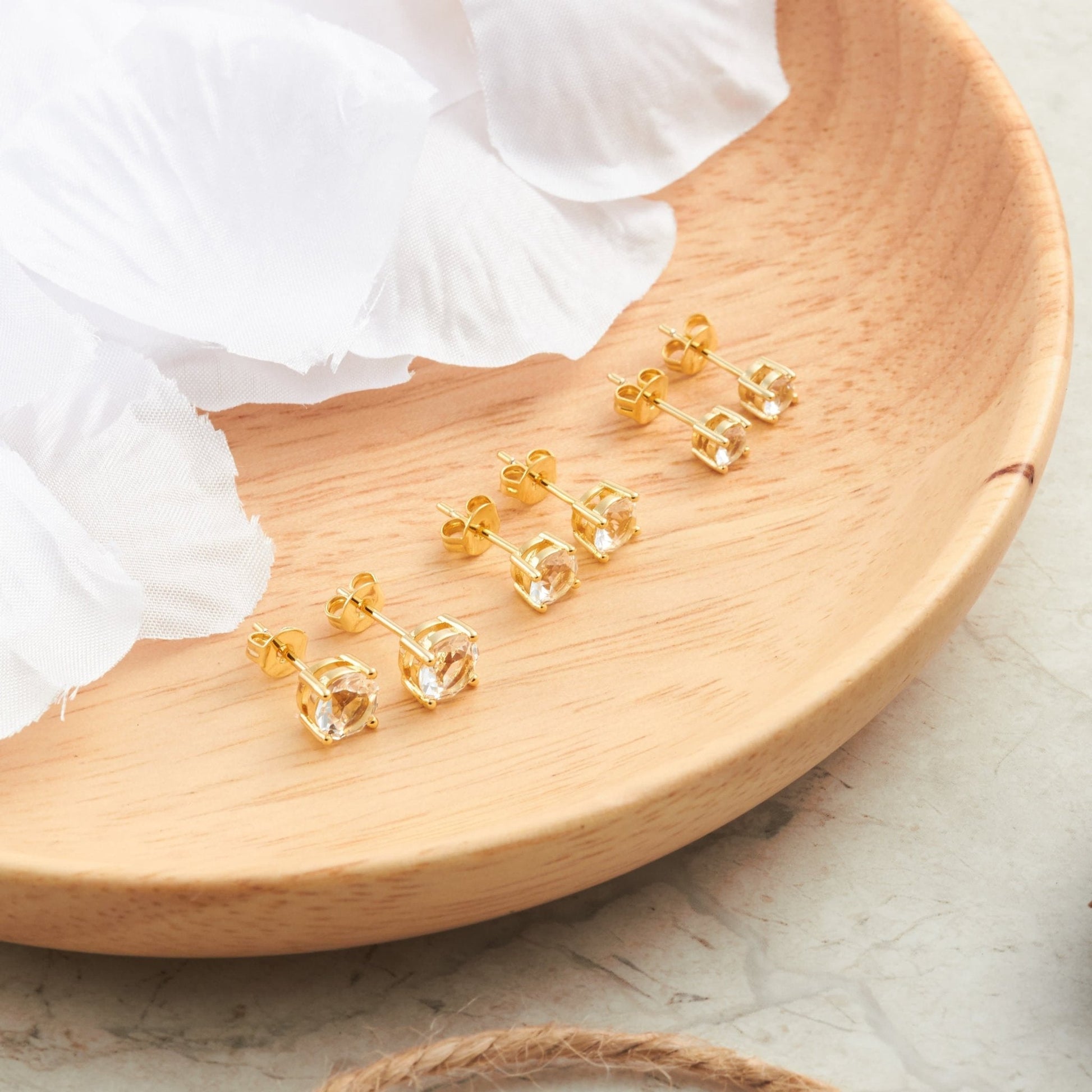 Three Pack of Gold Plated 4mm, 5mm & 6mm Earrings Created with Zircondia® Crystals