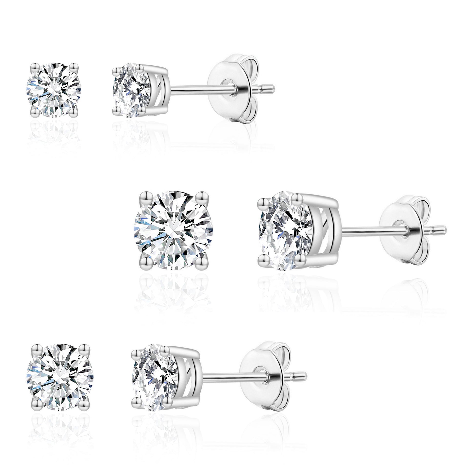 Three Pack of Silver Plated 4mm, 5mm & 6mm Earrings Created with Zircondia® Crystals