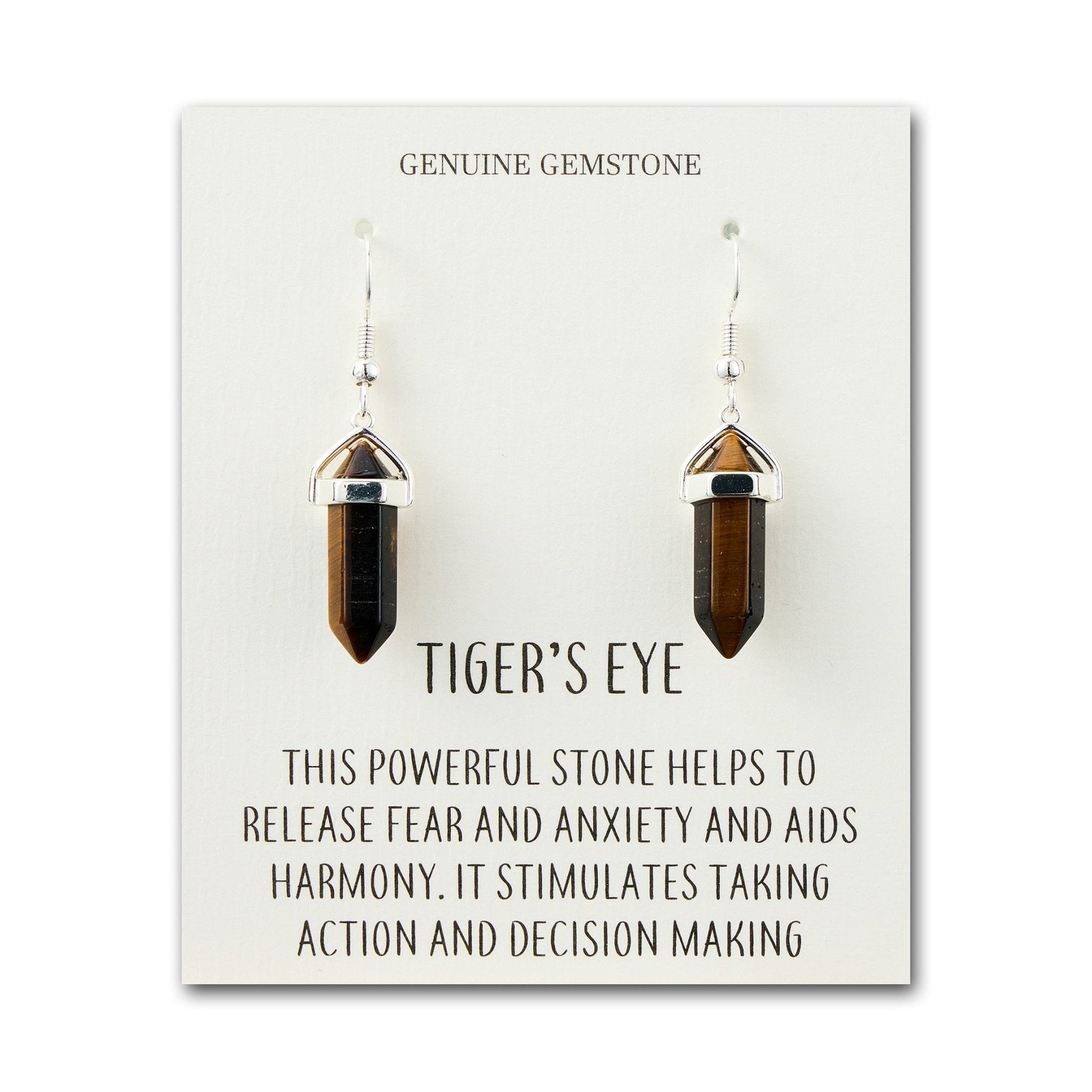 Tiger's Eye Gemstone Drop Earrings with Quote Card