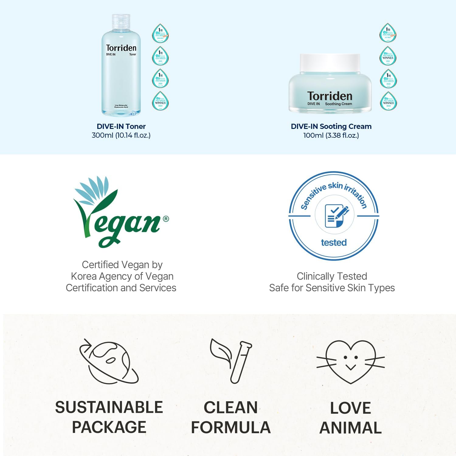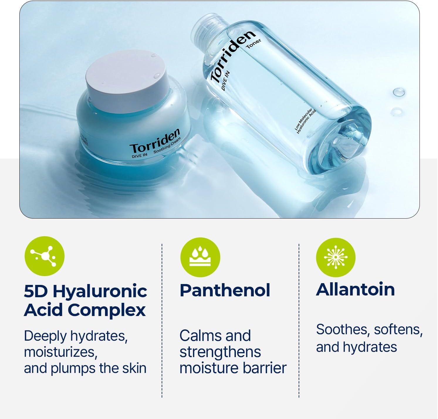 The Torriden Dive-In Low Molecular Hyaluronic Acid Facial Toner is designed to flood your skin with essential hydration. Formulated with five types of low molecular weight hyaluronic acid, it penetrates deep into the skin to deliver lasting moisture while supporting a plump, supple complexion. Its lightweight, fast-absorbing texture refreshes the skin without stickiness, leaving it soft and revitalized. Ideal for daily use, this toner also calms irritation and preps skin to absorb the next steps in your routine more effectively.