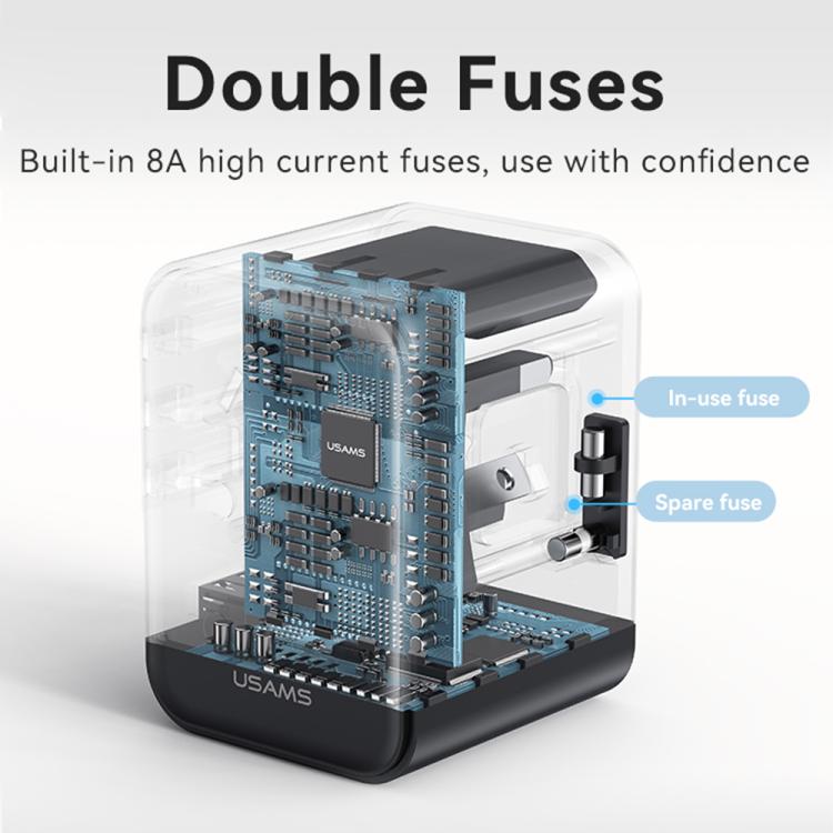 USAMS CC308 17W Dual Type-C and USB-A Ports Universal Travel Charger(Black)