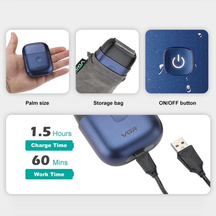 VGR V-340 5W USB Mini Portable Reciprocating Electric Shaver(Blue)