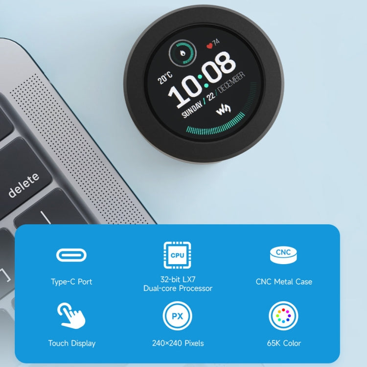 5. Onboard 1.28-inch capacitive touch LCD screen, 240 x 240 resolution, 65K color