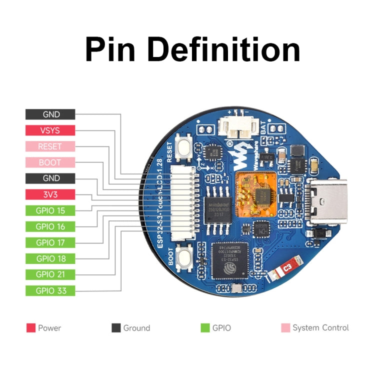 Waveshare 26959 ESP32-S3 1.28inch LCD Development Board, 32-Bit LX7 Dual-Core Processor With Touch