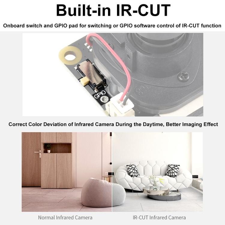 2. Built-in R-CUT function, onboard switch and GPIO pad, 3. Support switch switching or GPI1O software control R-CUT switch
