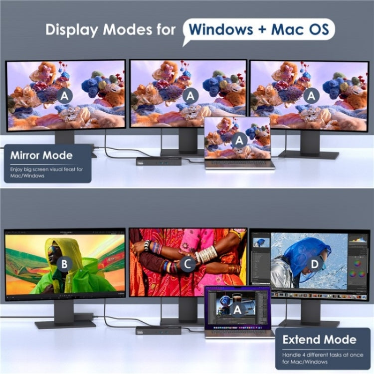 2.Triple 4K@60Hz Display: With five video interfaces (2 DisplayPort + 2 HD + HD (Alt Mode)), you can simultaneously display content on three external monitors, with each screen showing different content, making multitasking a breeze. Supports triple display resolutions up to 3840x2160@60Hz with a DP1.4 source. Note: The HD (Alt Mode) port requires your laptop’s Type-C port to support video output
