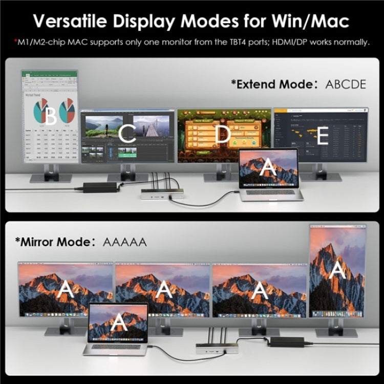 3.For Macs with M1/M2 chips can only output one video from the three Thunderbolt 4 ports, though HD/DP ports will function normally.