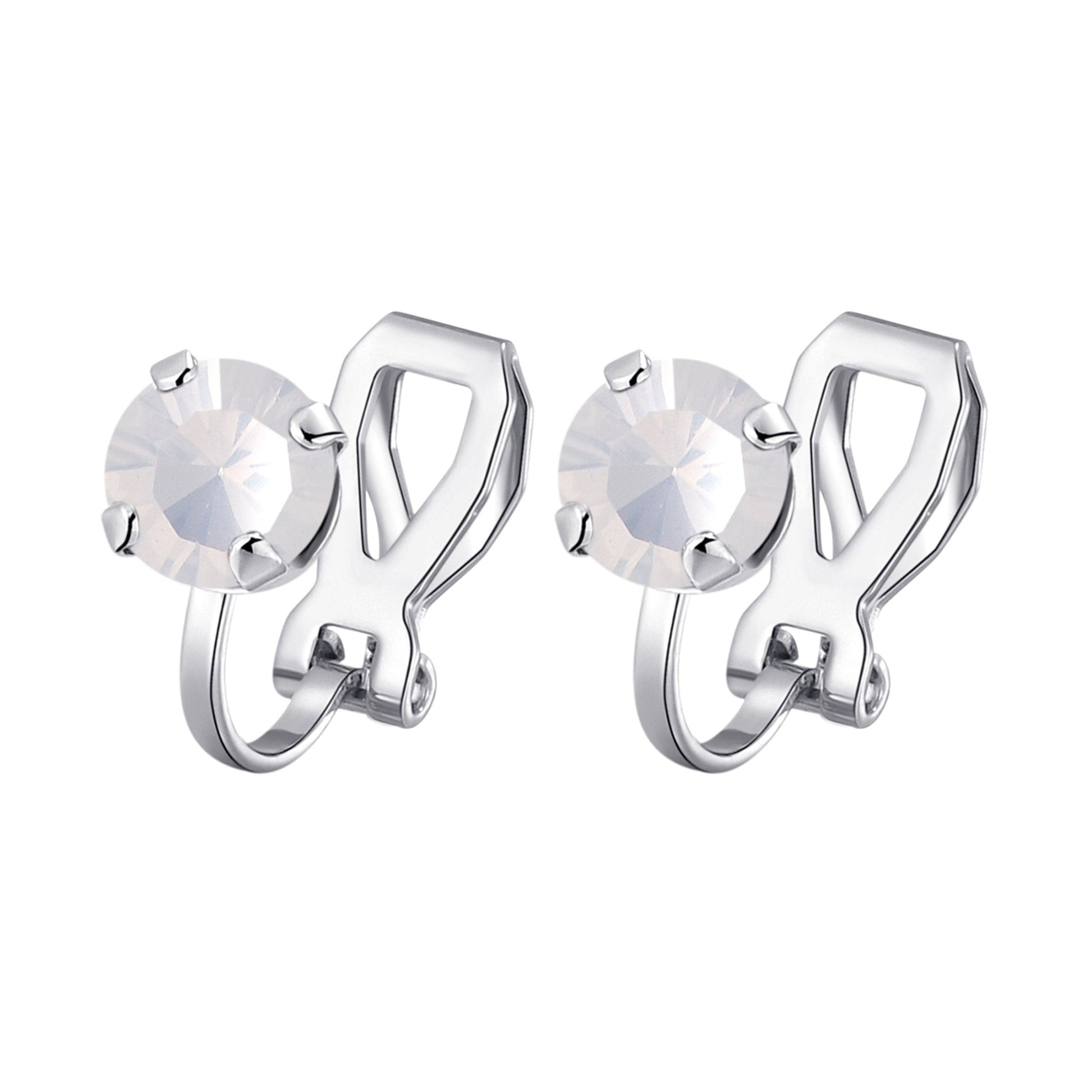 White Opal Crystal Clip On Earrings Created with Zircondia® Crystals