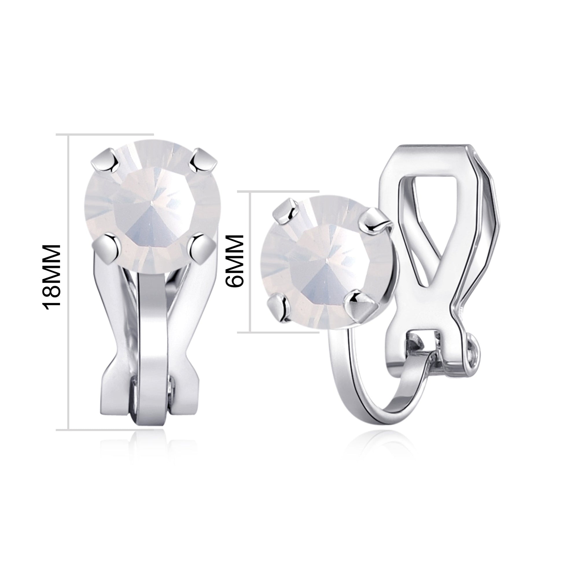 Gorgeous White Opal Earrings made with Zircondia® Crystals! Silver plated for hypo-allergenic comfort and style. Philip Jones Metal, brass alloy and a 4-prong setting make these 16mm (H) x 8mm (W) clip-ons shine with a 1.89g weight. Packaged in a special 8.5cm x 9.5cm gift pouch. Treat yourself today!