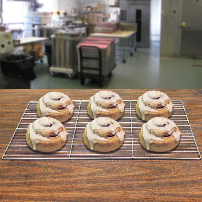 Designed for bakeries requiring maximum cooling capacity, this larger rack increases productivity by accommodating more products per cooling cycle. The 43.2cm x 63.5cm surface fits non-standard and European-sized baking sheets whilst providing ample space for cooling multiple batches simultaneously. The precisely spaced wire grid supports delicate items like macarons and small tarts without risk of falling through.