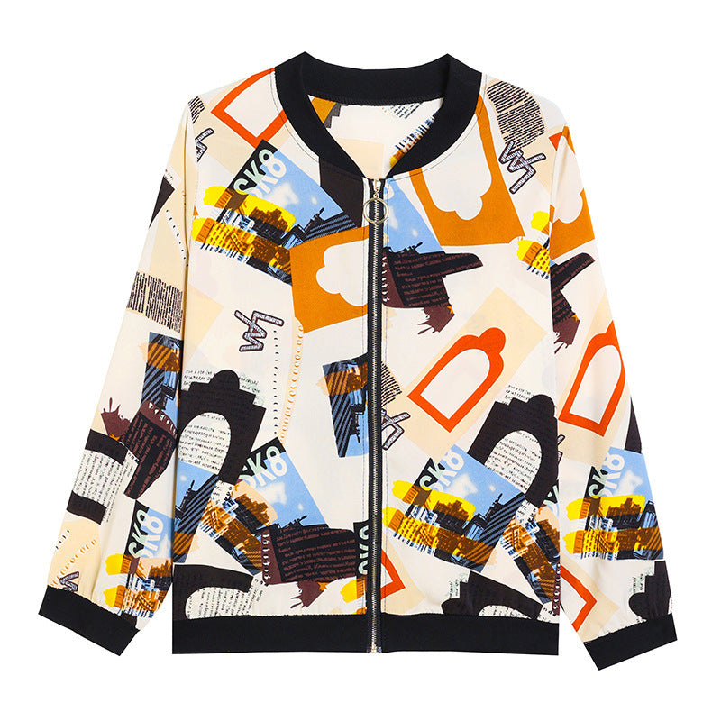 Product information: Pattern: Graffiti Color: 8052# White, 8053# apricot Size: M,L,XL,2XL,3XL,4XL,5XL Version: Loose Popular elements: contrast color Thickness: thin Fabric name: thread knitted chiffon Sleeve type: regular sleeve Main fabric composition: Polyester (polyester fiber) Sleeve length: long sleeve