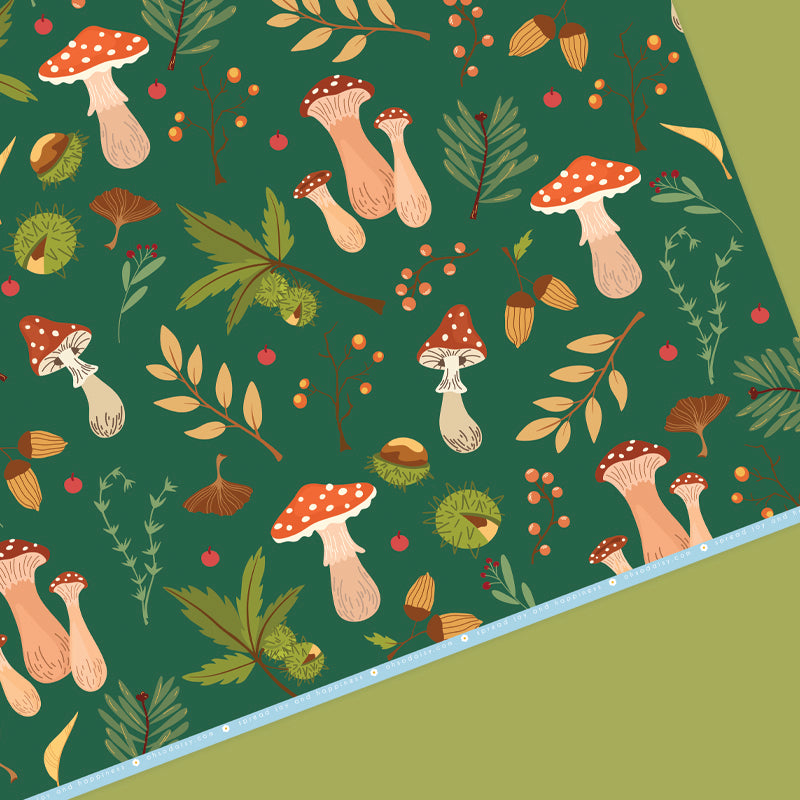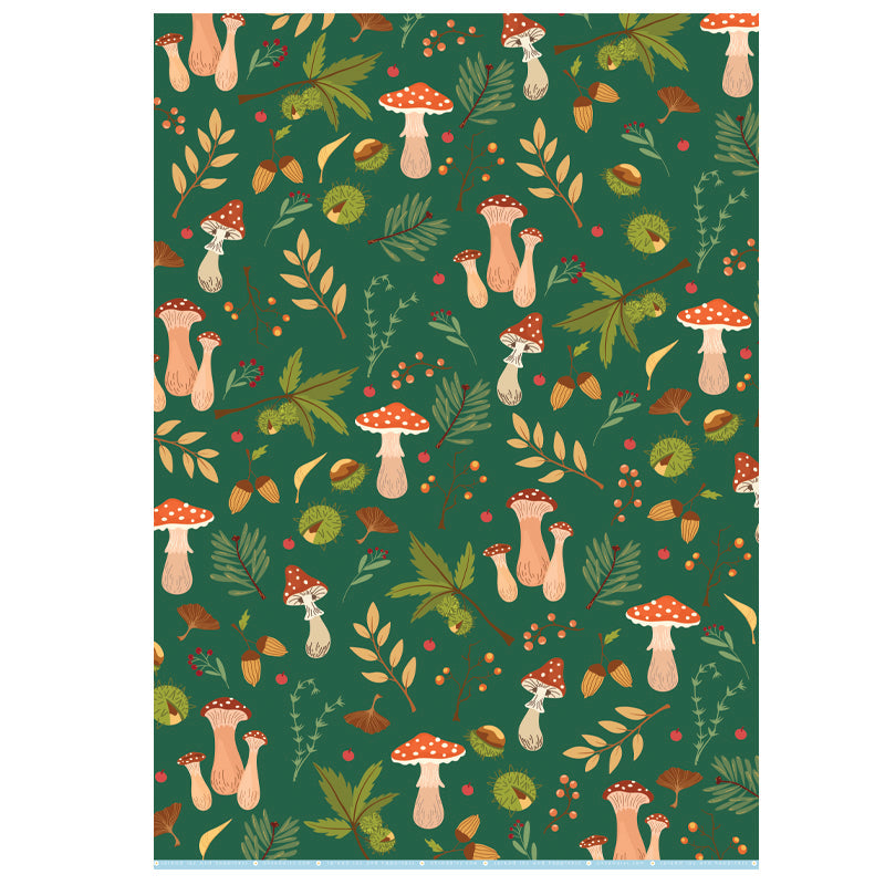 A genderless gift wrap full of the seasons offerings with woodland leaves, berries and mushrooms for the picking!