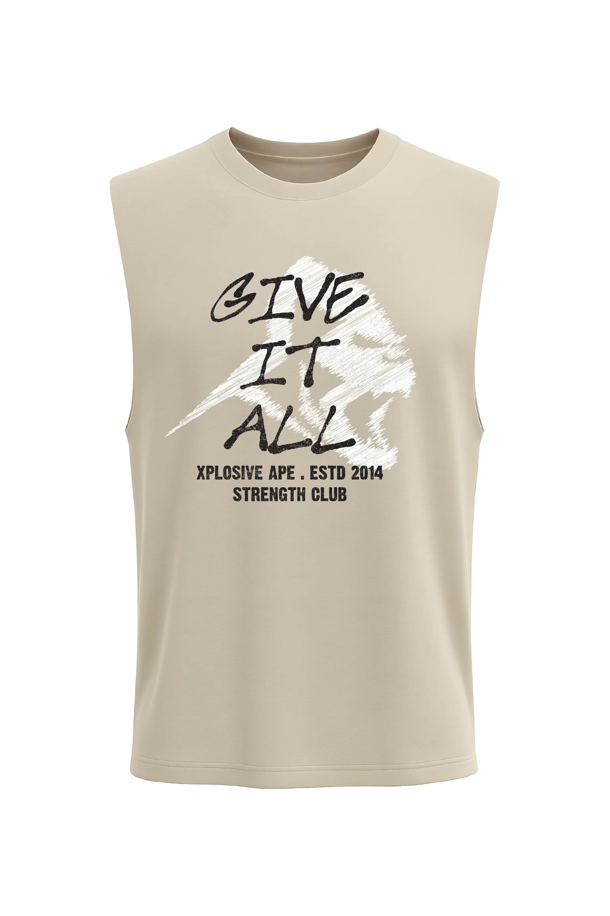 Experience unrestricted movement and breathable comfort with this Sand sleeveless athletic top. Designed with extended raw-edge armholes to enhance ventilation and mobility, it’s ideal for high-performance training or casual wear.