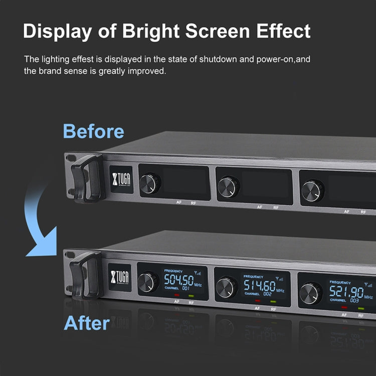 1. Professional Level UHF Wireless Microphone system:Professional UHF microphone system delivers clear and lound audio signal and is much more stable than the VHF, 4-channel wireless microphone receiver,Fixed frequency,Group A 504.50MHz, 514.60MHz, 521.90MHz, 538.70MHz,superior anti-interference ability.Upgraded wireless signal acquisition, 2 antennas can be installed on the back of the receiver to enhance the received signal, ensuring high frequency stability and accurac