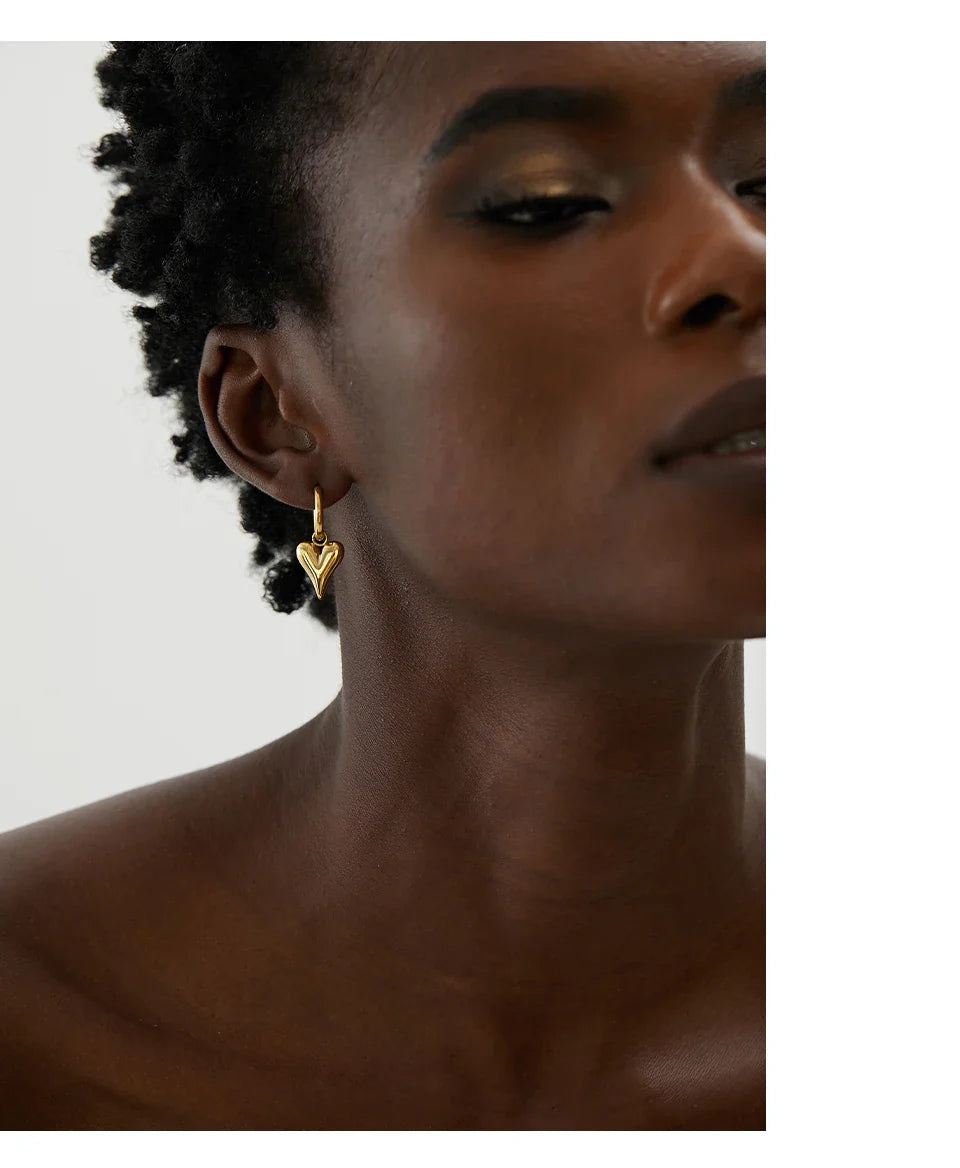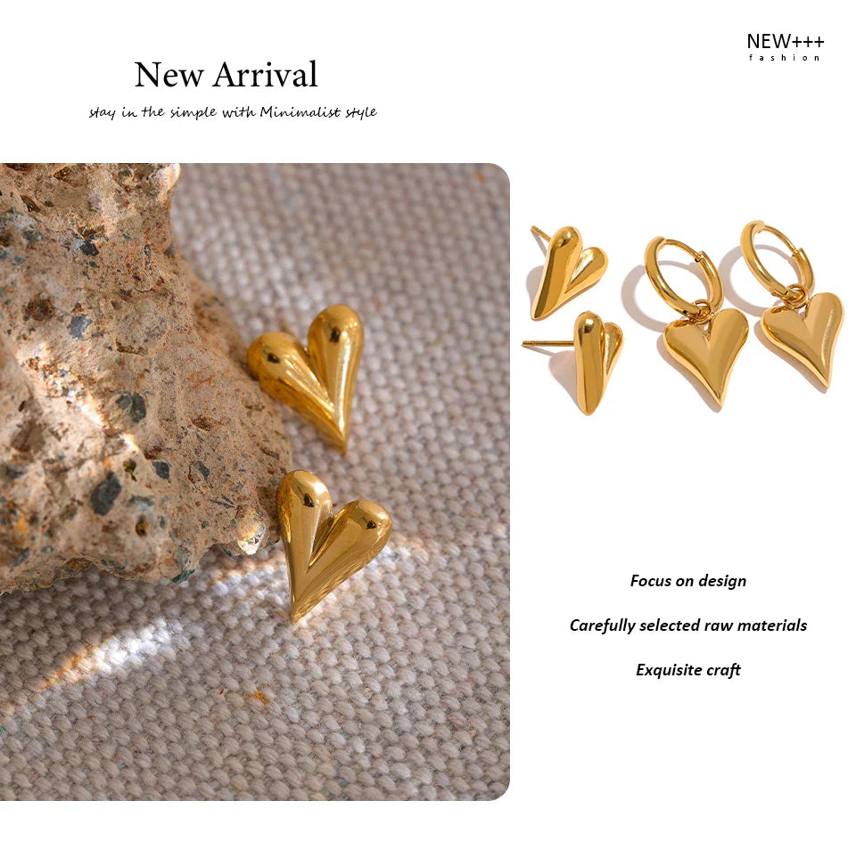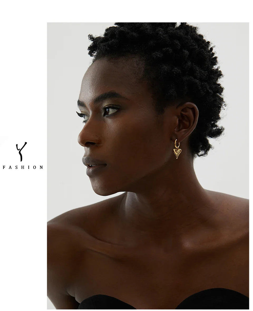 Yhpup Stainless Steel Chic Heart Huggie Hoop Earrings Charm Gold Color Tarnish Free Trendy Fashion Jewelry for Women Bijoux