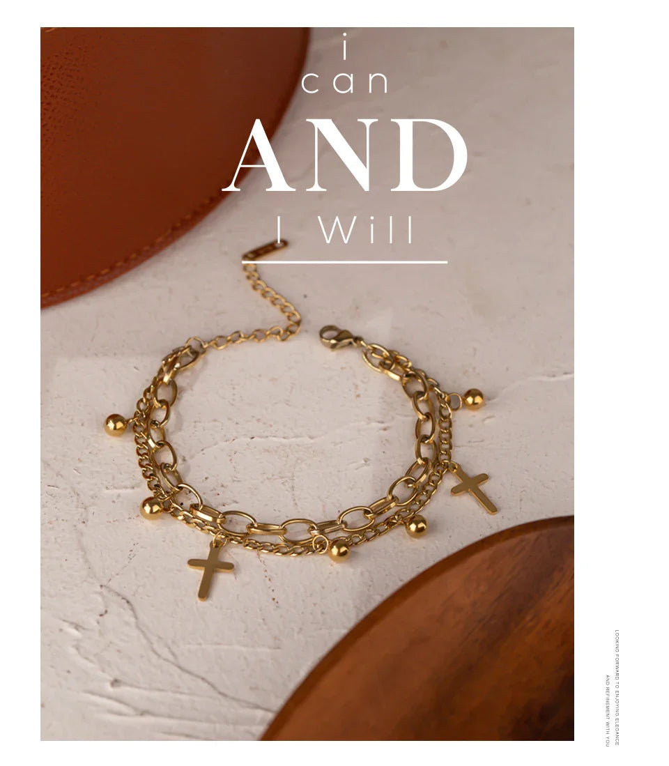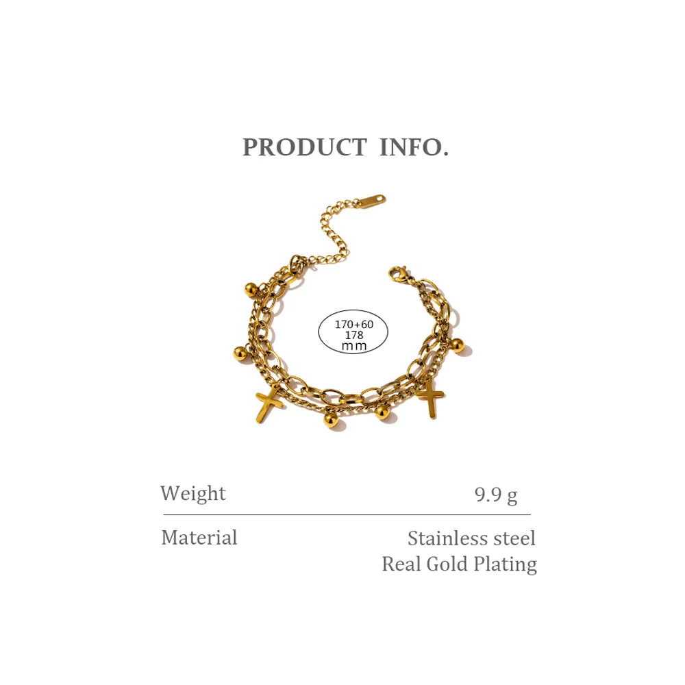 Yhpup Stainless Steel Cross Layered Bracelet for Women Charm Metal 14 K Plated Trendy Golden Wrist Unique Design Jewelry брелок