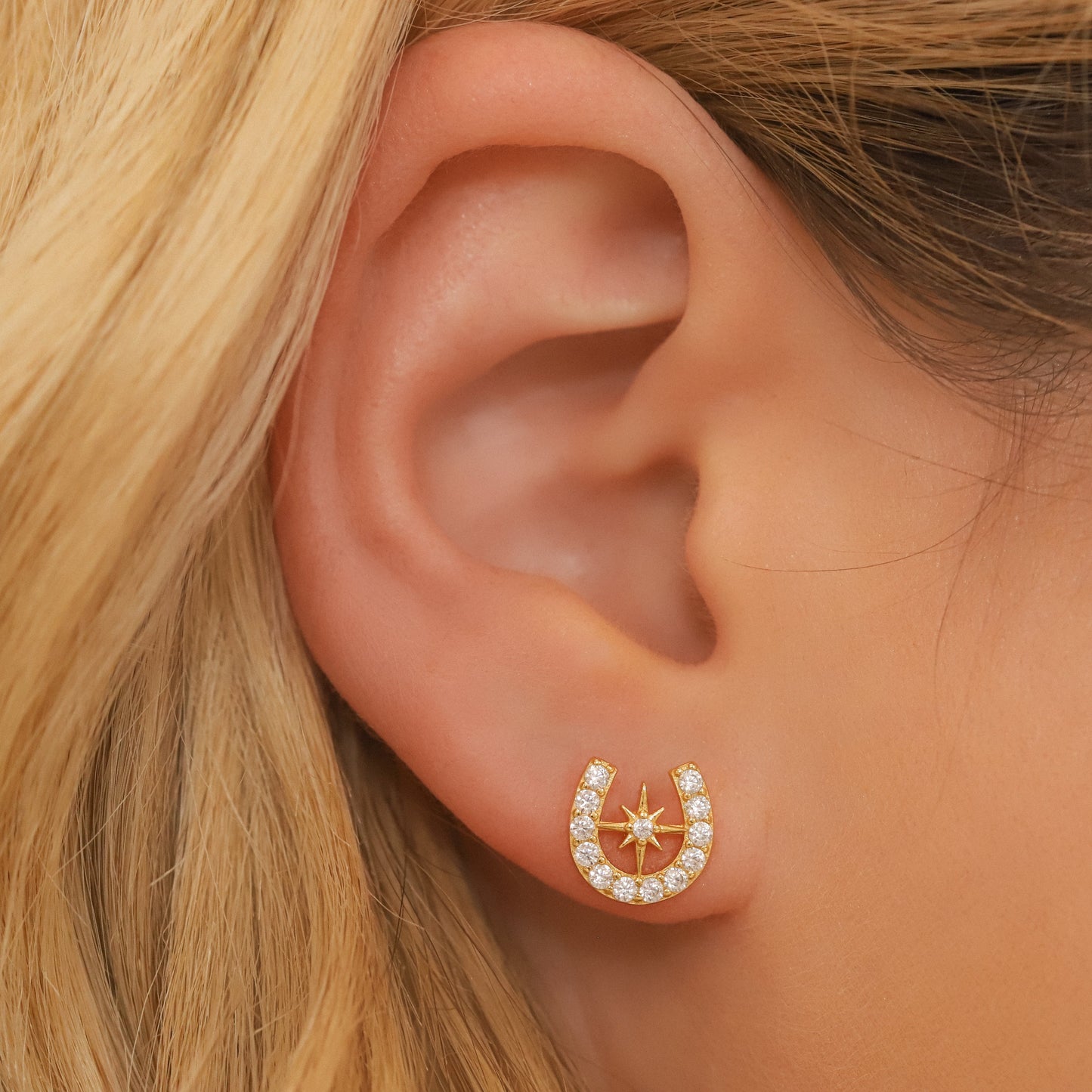 Zada Horseshoe Star Stud Earrings | 18K Gold Plated
