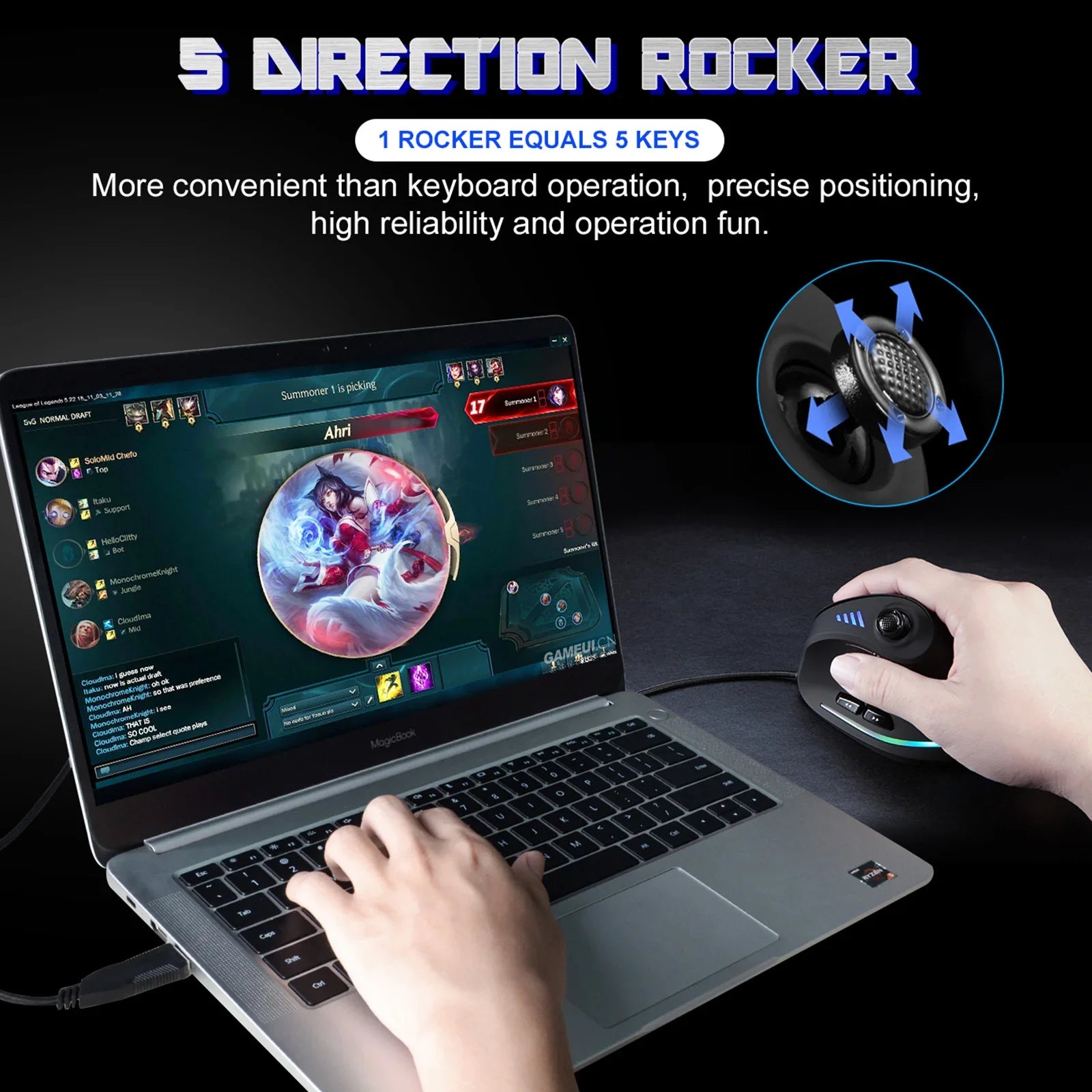 Lefon Vertical Gaming Mouse Wired RGB Ergonomic USB Joystick Mouse Programmable Laser Gaming Mice 10000 DPI Upgraded for Gamer