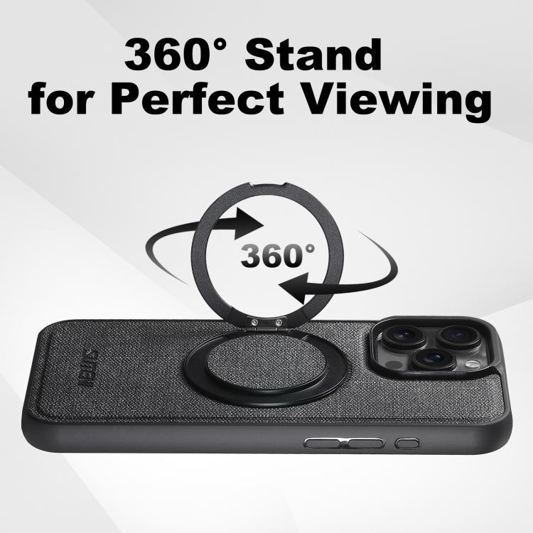 For iPhone 15 Pro Suteni G3 360 Rotation Holder MagSafe Denim Leather Back Phone Case(Black)